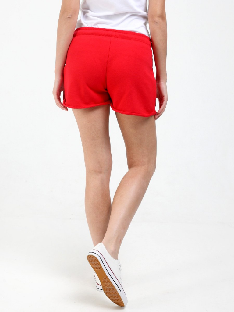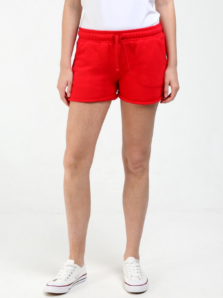 Женские трикотажные шорты, выполнены из хлопкового полотна с добавлением полиэстра. Приятны при контакте с кожей, не сковывают движения. В боковых швах глубокие карманы. По низу зафиксированные подвороты. В поясе шорты собираются широкой резинкой. Дополнительно в поясе имеется шнур.