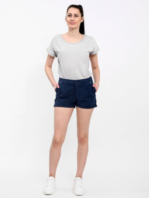 Женские шорты в стиле casual. Посадка Regular fit (полуоблегающие по бедру), широкие, по низу шорт манжеты. Высокая талия. Застежка на молнии. Спреди для свободы движения две скдадки. Сзади ложные карманы "в рамку". Выполнены из отбеленной эластичной мягкой ткани gabardine stretch. Изделие постирано в готовом виде после пошива. Параметры указаны для размера 28. Длина внутреннего шва для размеров 25-29 - 10, 0 см. , для размеров 30-32 - 11, 0 см.