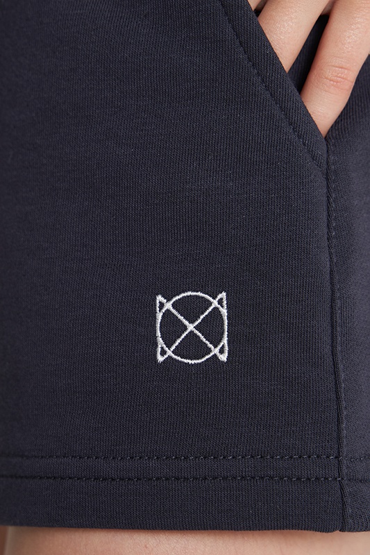 Укороченные шорты, боковые карманы. Пояс из кашкорсе. Декор вышивка