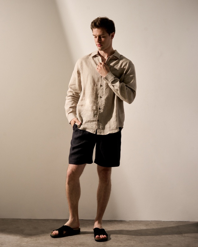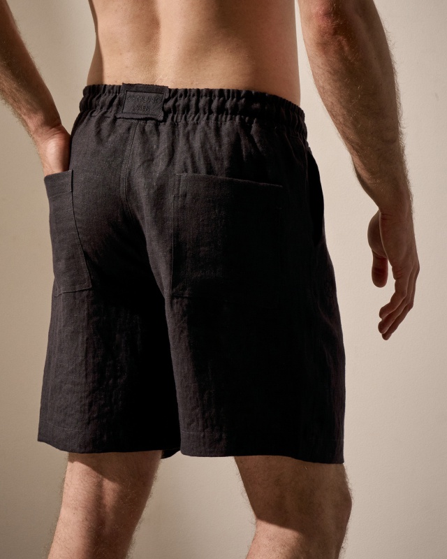 Шорты мужские из льна. Боковые и задние карманы. Пояс внутри с резинкой и шнурком