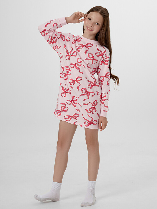 Очаровательная сорочка длиной выше колена из хлопковой трикотажной кулирки. Прямой и свободный силуэт, круглая горловина, длинные рукава с манжетами. Спущенная линия плеча гарантирует особый комфорт. Рекомендуем!