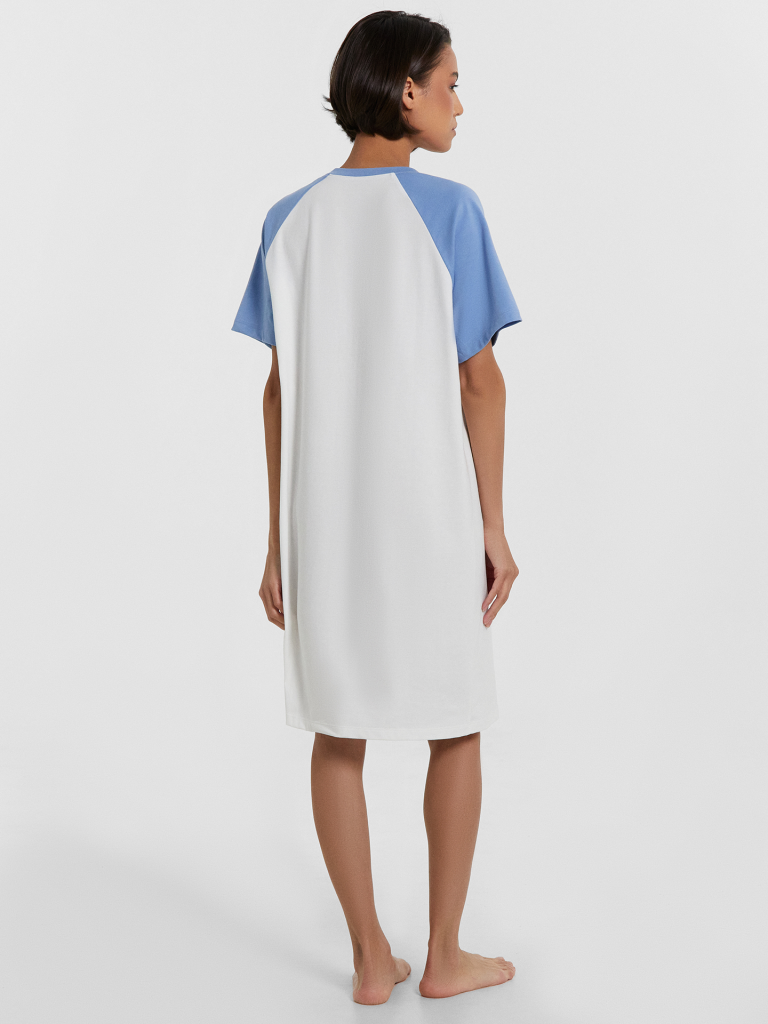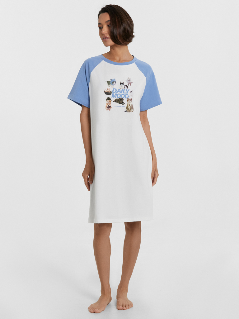 Эта женская сорочка прямого силуэта — удобный и универсальный элемент гардероба, идеально подходящий для повседневной носки и комфортного отдыха. Круглая горловина добавляет лаконичности в дизайн, а короткие рукава обеспечивают свободу движений и удобство. Нижний срез сорочки и рукавов обработан швом вподгибку, что придает изделию аккуратность и долговечность. Выполненная из смесового эластичного хлопка, модель обладает мягкостью, воздухопроницаемостью и эластичностью, обеспечивая комфорт в течение всего дня. Практичный и стильный вариант, который можно легко сочетать с другими элементами домашнего гардероба!