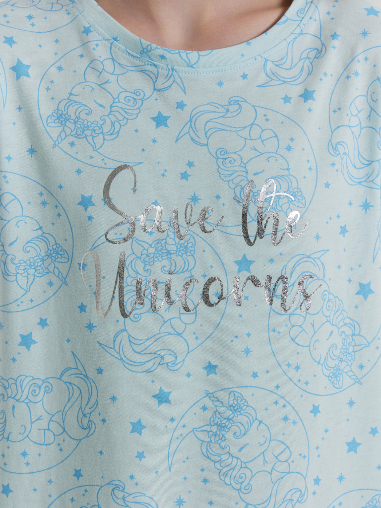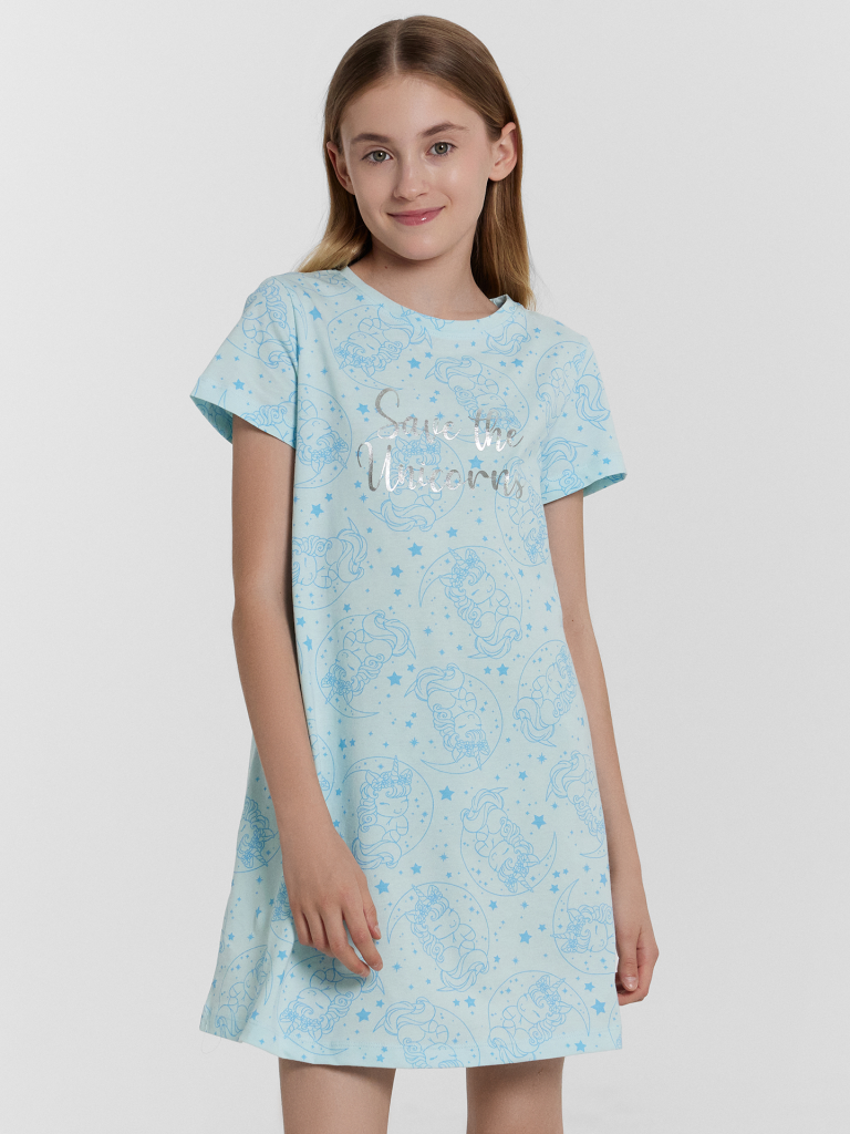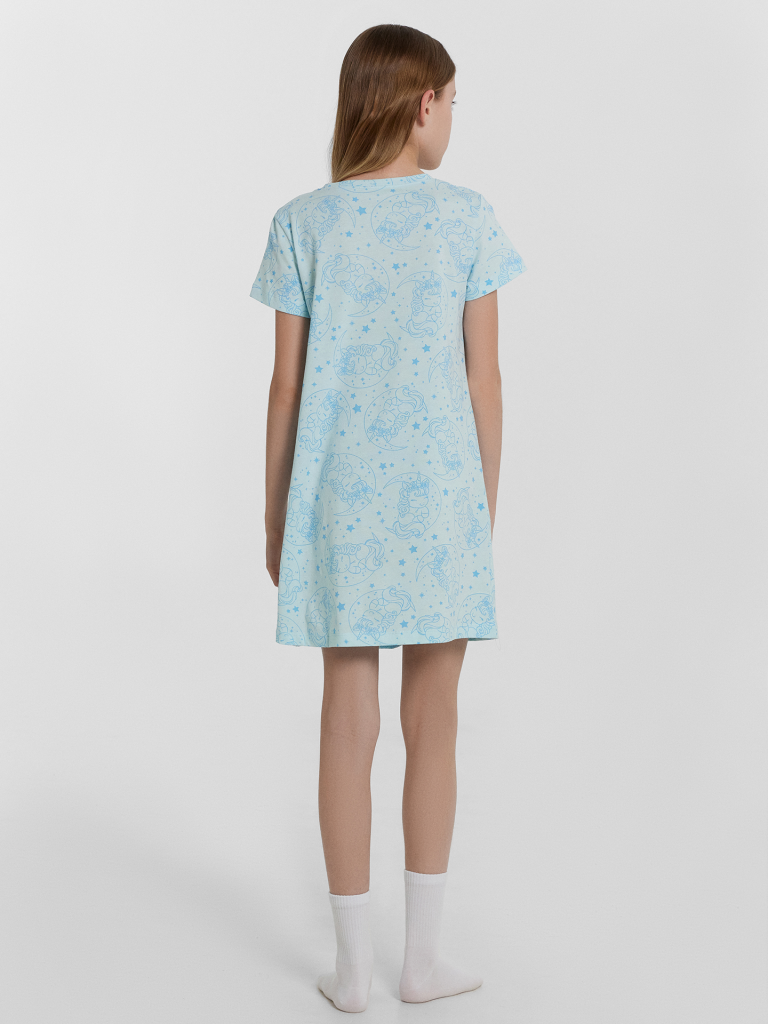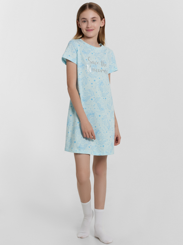 Сорочка прямого силуэта. Перед и спинка цельнокроенные. Длина выше колена. Рукав втачной, короткий. Горловина круглой формы, обработана обтачкой.