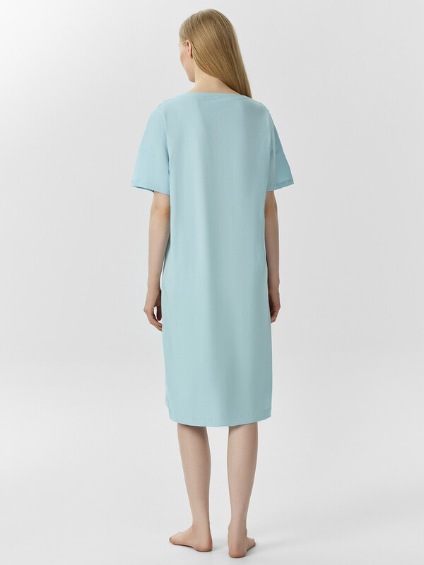 Ночная сорочка из натурального хлопкового материала — это идеальное сочетание комфорта, практичности и привлекательного дизайна. Хлопок обладает отличной воздухопроницаемостью, мягкостью и гипоаллергенными свойствами, благодаря чему сорочка подходит даже для самой чувствительной кожи. Свободный силуэт не ограничивает движения, обеспечивая максимальное удобство во время сна и отдыха. Длина до колена делает модель универсальной — она одинаково хорошо подходит как для ночного гардероба, так и для домашнего использования. Короткие рукава и круглый вырез горловины придают образу лаконичность и нежность, а боковые разрезы добавляют легкости и визуальной динамики. Сорочка выглядит аккуратно и женственно, создавая ощущение уюта и расслабленности. Это отличный выбор для тех, кто ценит натуральные материалы, комфорт и стиль в домашней одежде.