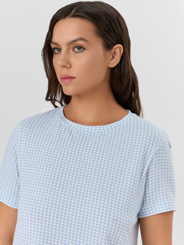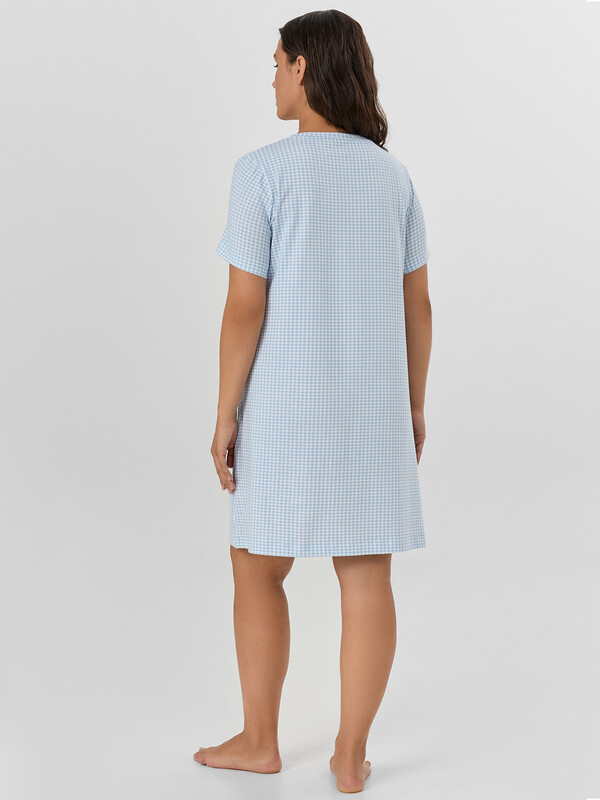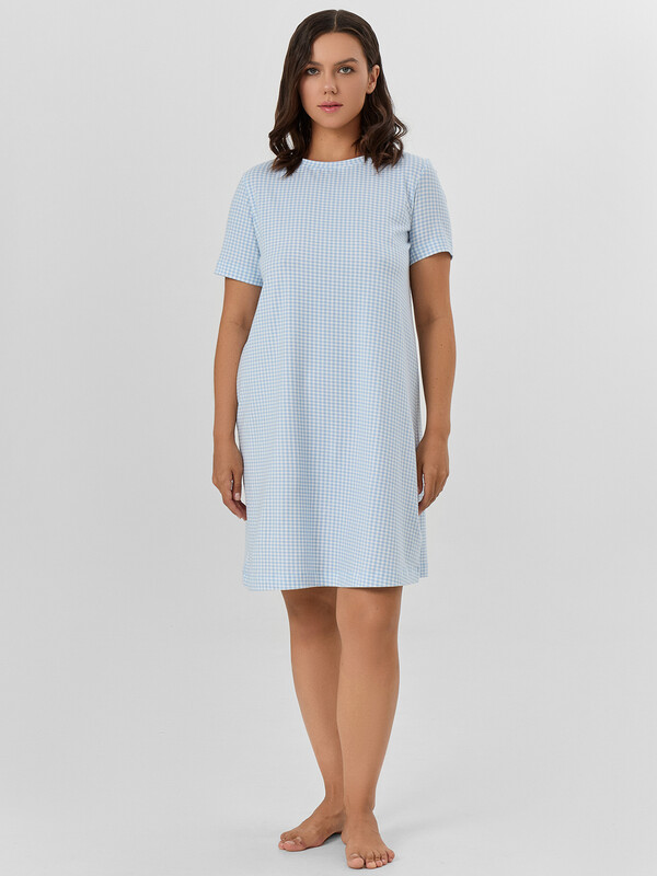 Хлопковая женская сорочка свободного силуэта. Горловина круглой формы. Рукава короткие, линия плеча слегка спущена. Уютный вариант для сна!