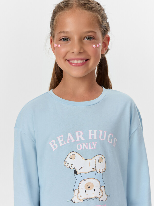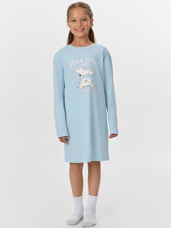 Эта сорочка для девочек — идеальный выбор для домашнего уюта и спокойного сна. Модель прямого свободного силуэта обеспечивает максимальный комфорт, не стесняя движений и позволяя ребенку чувствовать себя легко и свободно. Выполненная из мягкой хлопковой кулирки, сорочка приятна к телу, хорошо пропускает воздух и подходит даже для чувствительной кожи. Круглая горловина аккуратно обработана обтачкой из основного материала, что делает изделие эстетичным и долговечным. Спущенная линия плеча и длинные рукава добавляют расслабленности и удобства, а низ изделия и рукавов аккуратно застрочен швом вподгибку — для чистого и аккуратного вида. Такая сорочка прекрасно подойдет для сна, отдыха дома или уютных вечеров с книгой. Натуральный материал, продуманный крой и нежный дизайн — все, что нужно для ежедневного комфорта.