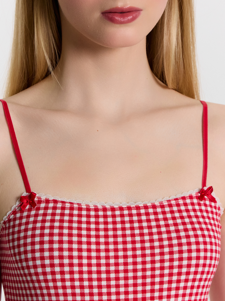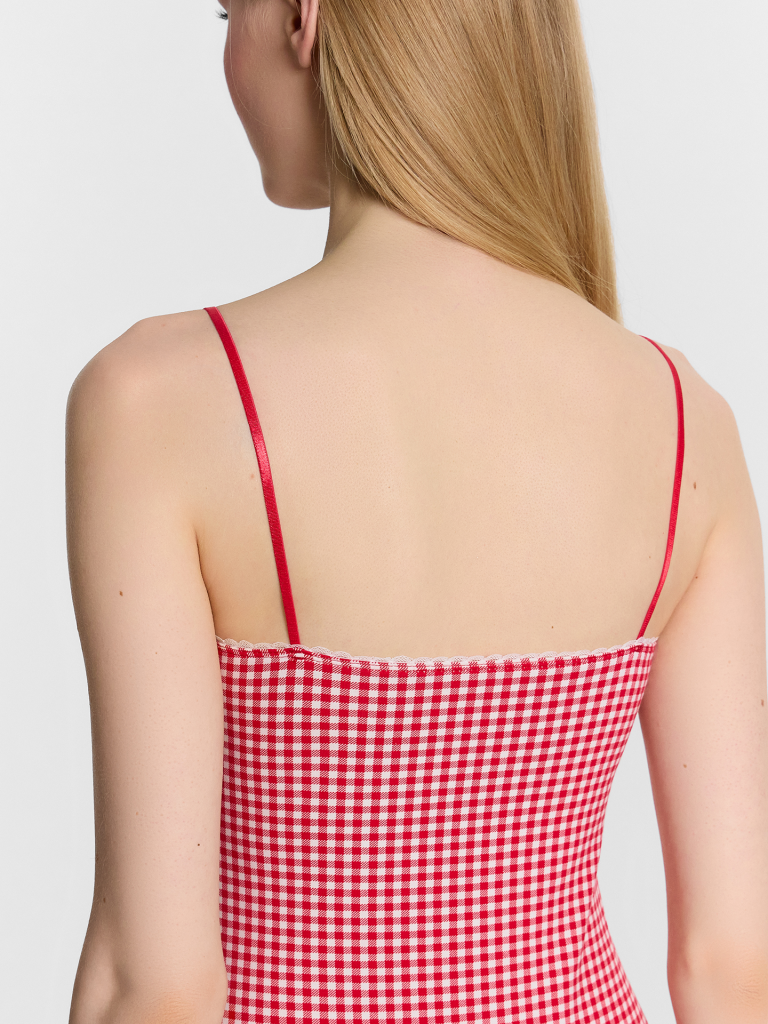 Эта женская ночная сорочка — элегантное и комфортное решение для сна. Прилегающий силуэт мягко подчеркивает фигуру, создавая женственный и изящный образ. Мини-длина придает изделию легкость, а верхний край обработан мягкой тесьмой, обеспечивающей комфортное прилегание. Тонкие бретели-спагетти создают утонченный и легкий акцент, добавляя воздушность модели. Низ изделия аккуратно обработан швом в подгибку, что делает сорочку не только красивой, но и долговечной. Изготовленная из хлопковой кулирки, она дарит ощущение мягкости и естественной воздухопроницаемости, позволяя коже дышать и обеспечивая комфортный отдых. Прекрасный выбор для тех, кто ценит сочетание простоты, удобства и элегантности в домашнем гардеробе. Отлично подходит для уютных вечеров и спокойного сна!