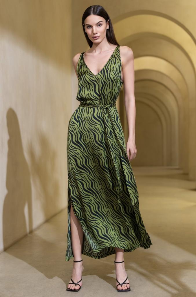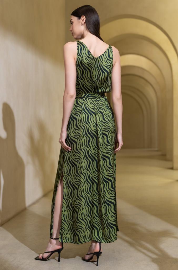 Длинный сарафан Mia-Amore свободного силуэта. Изделие выполнено из принтованного смесового шелка. По низу боковых швов обработаны разрезы для свободы движения. Линию талии можно подчеркнуть за счет пояса, который идет в комплекте.