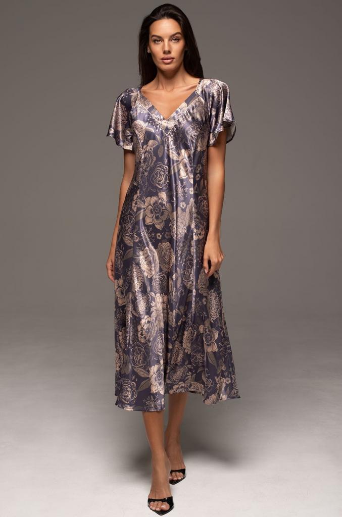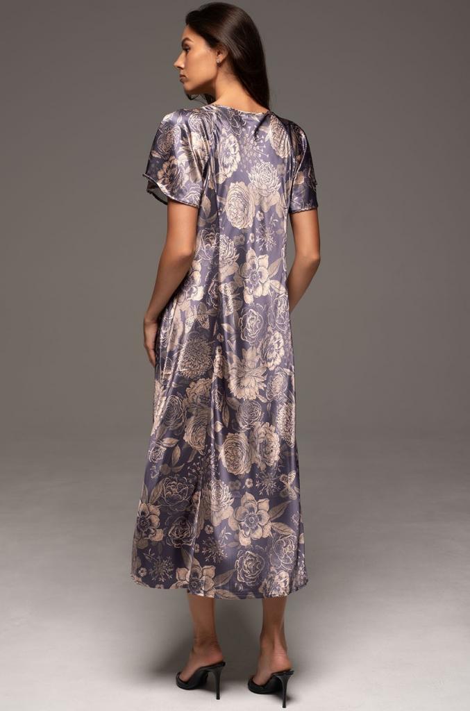 Элегантная длинная сорочка Mia-Amore выполнена из принтованного смесового полотна. Сорочка приталенная, расклешенная к низу, с двумя рельефными линиями спереди и сзади, для придания еще большей женственности силуэту. Расклешенные рукава-реглан длиной ¾. Спереди горловину украшает отделка в виде контрастного канта.