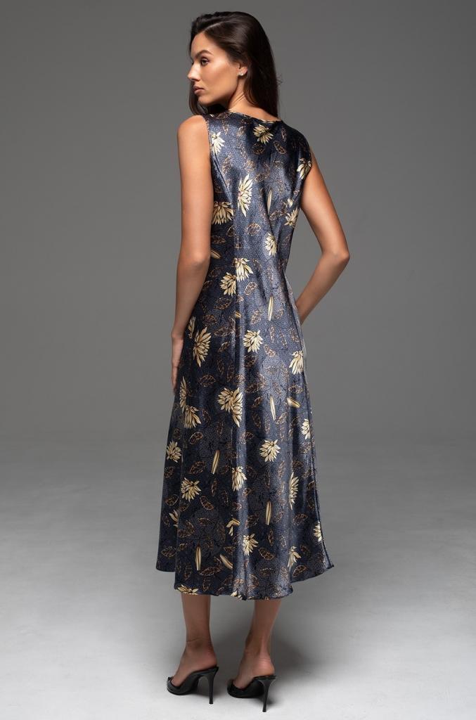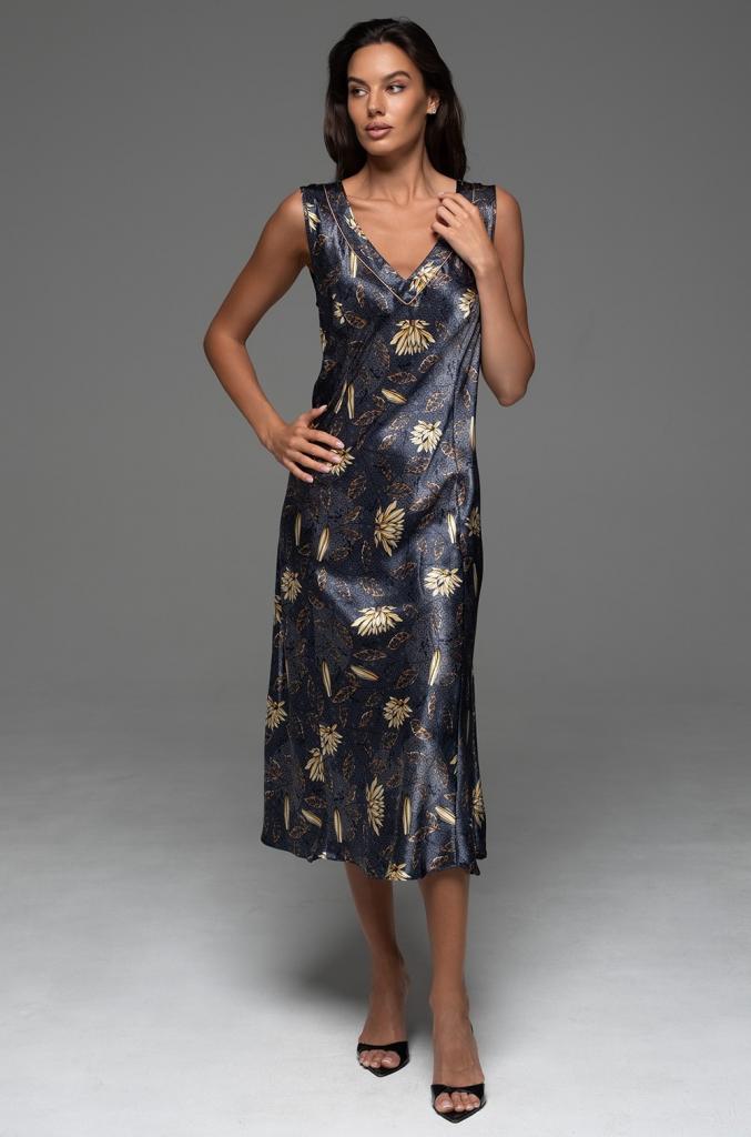 Длинная сорочка Mia-Amore полуприлегающего силуэта на широких бретелях, выполнена из принтованного смесового шелка. Контрастный кант подчеркивает линию выреза.