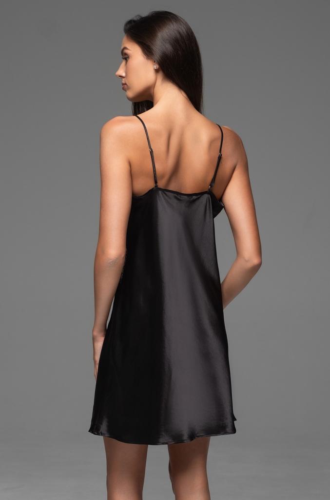 Короткая сорочка Mia-Amore на тонких регулируемых бретелях выполнена из однотонного смесового шёлка. Лиф сорочки богато декорирован вышивным мягким кружевом.