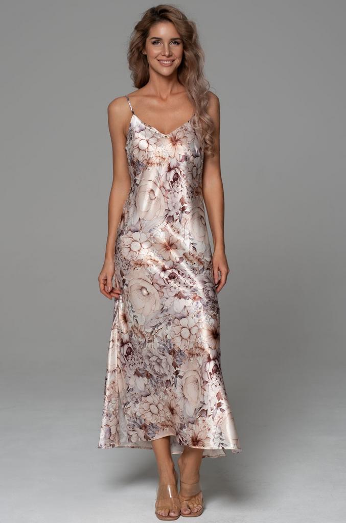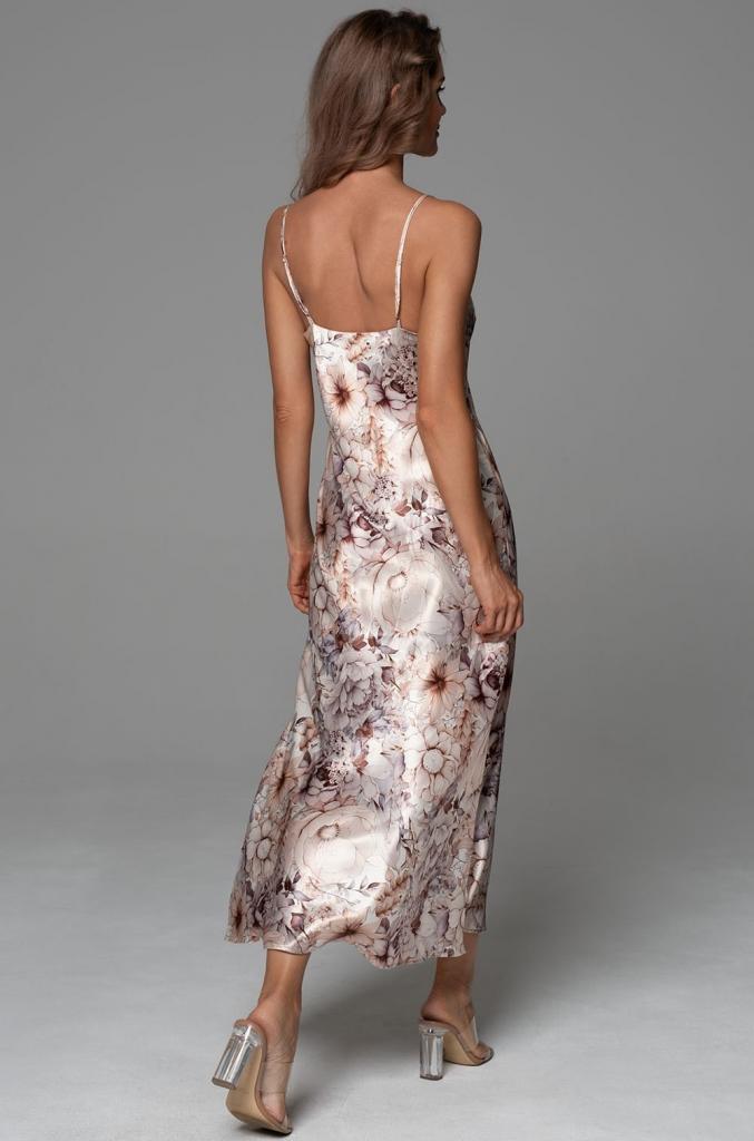 Длинная классическая сорочка Mia-Amore без подреза на тонких регулируемых бретелях с разрезом сбоку выполнена из принтованного смесового шёлка. Центр лифа украшен подвеской.