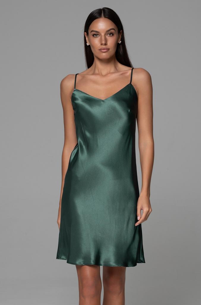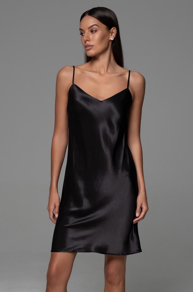 Короткая сорочка Mia-Amore на тонких бретелях без подреза под грудью выполнена из однотонного смесового полотна.