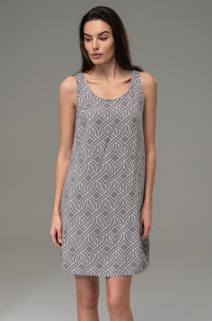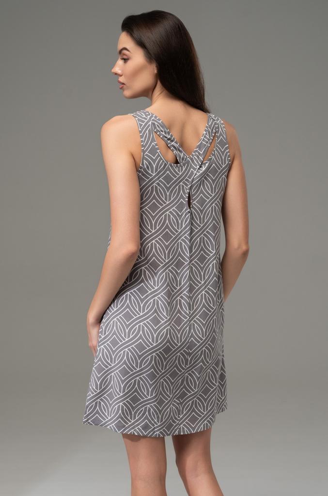 Короткая сорочка Mia-Amore без подреза на маечного типа бретелях выполнена из принтованного вискозного полотна. Спинку сорочки украшает оригинальное переплетение бретелей.