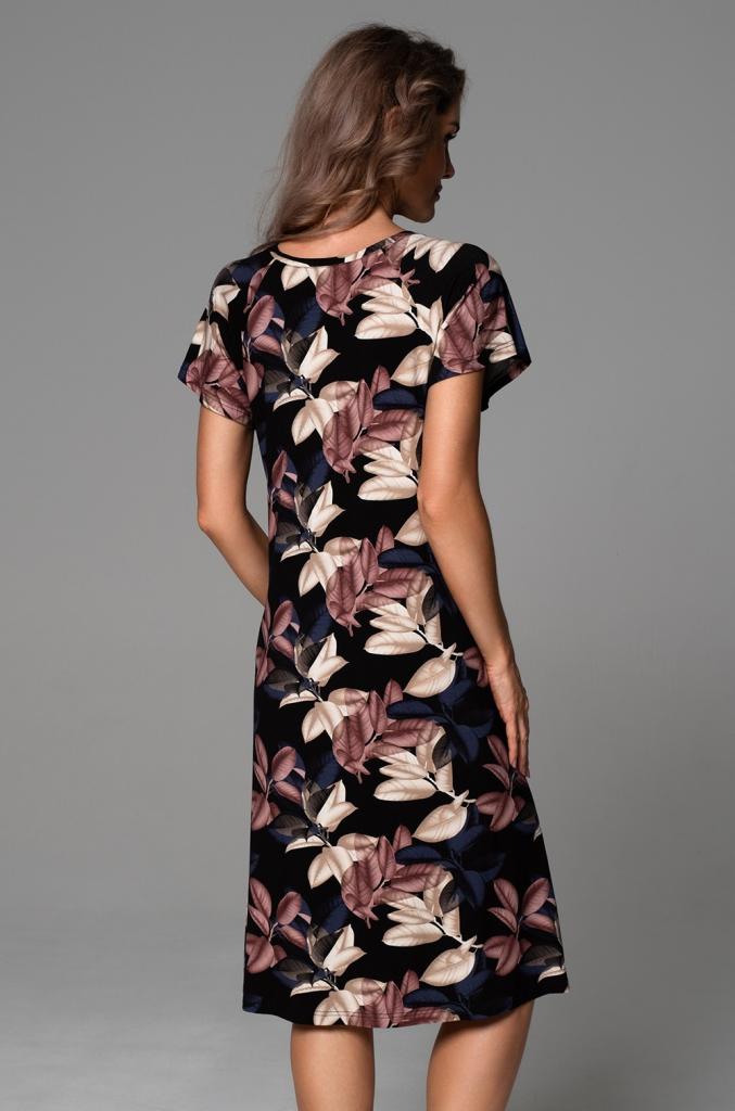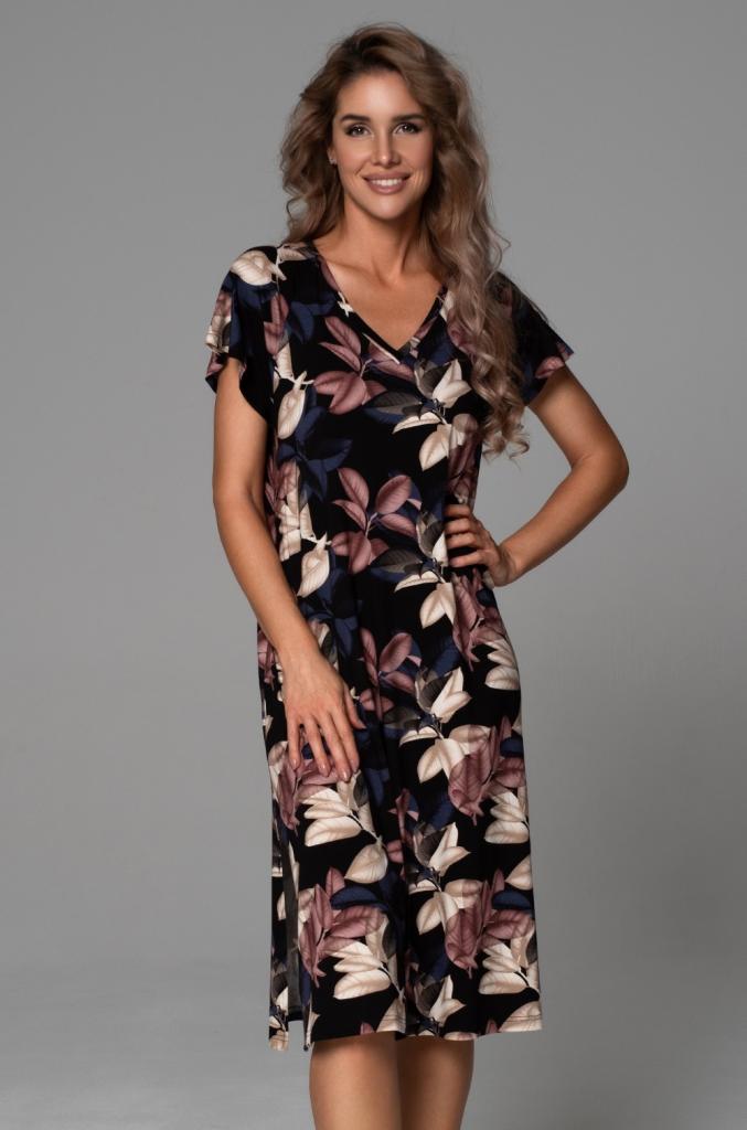 Длинная сорочка Mia-Amore с коротким рукавом, без подреза под грудью, выполнена из принтованного трикотажного полотна. По бокам обработаны разрезы для свободы движения.