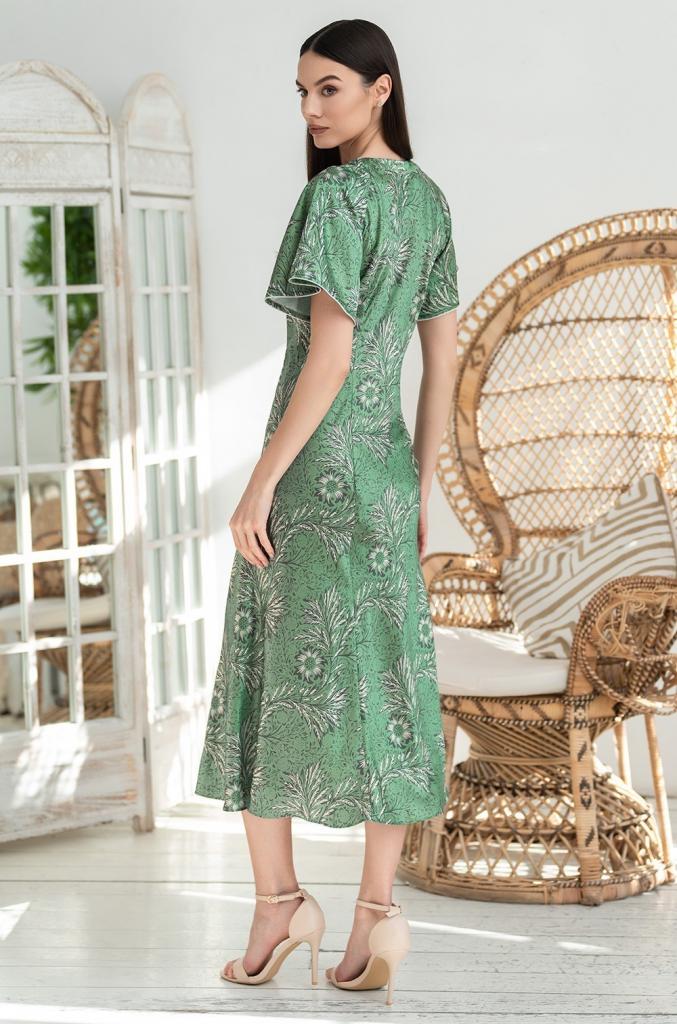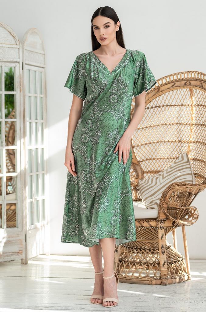 Элегантная длинная сорочка Mia-Amore из искусственного принтованного шелка. Сорочка приталенная, расклешенная к низу, с двумя рельефными линиями спереди и сзади, для придания еще большей женственности силуэту. Эффектные расклешенные рукава-реглан по нижнему краю декорированы тонким кантом.