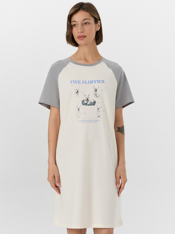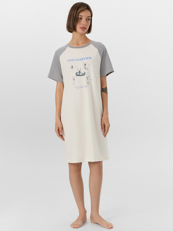 Надпись «Пять пушистиков» и забавные щенки делают сорочку не просто предметом для сна, а милым аксессуаром, поднимающим настроение. Хлопок обеспечивает воздухообмен и мягкость, даря коже ощущение нежности. Практичность и качество делают эту сорочку универсальным элементом гардероба. Нежность, удобство и стиль в каждой детали для тех, кто ценит гармонию и комфорт в повседневной жизни.