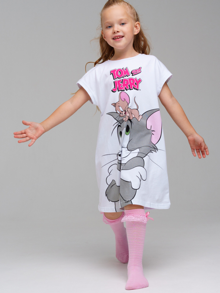 Сорочка ночная трикотажная для девочек белый,разноцветный