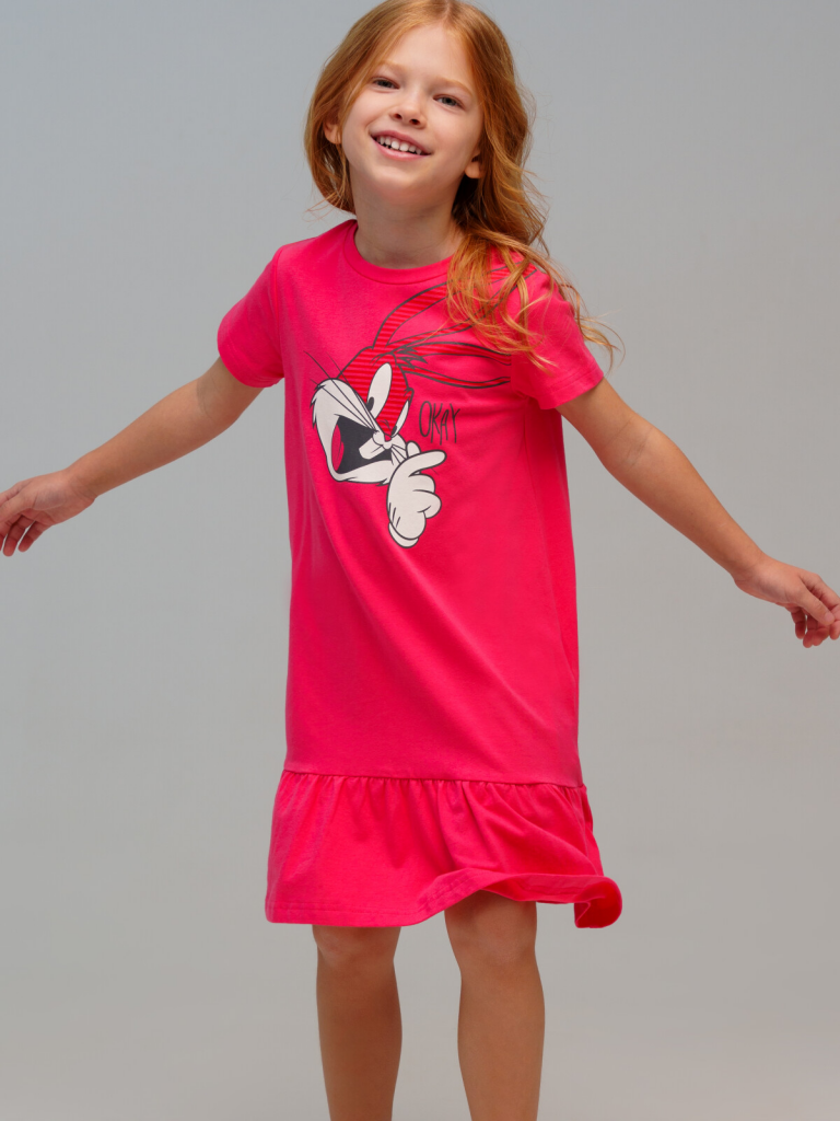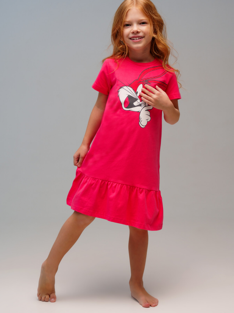 Ночная сорочка детская для девочки. Ночнушка из эластичного и приятного на ощупь трикотажа. Высокое содержание хлопка 95%. Благодаря наличию эластана в составе ткани изделие держит форму и меньше мнется.