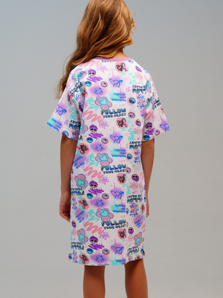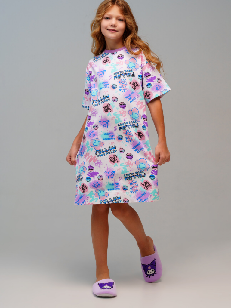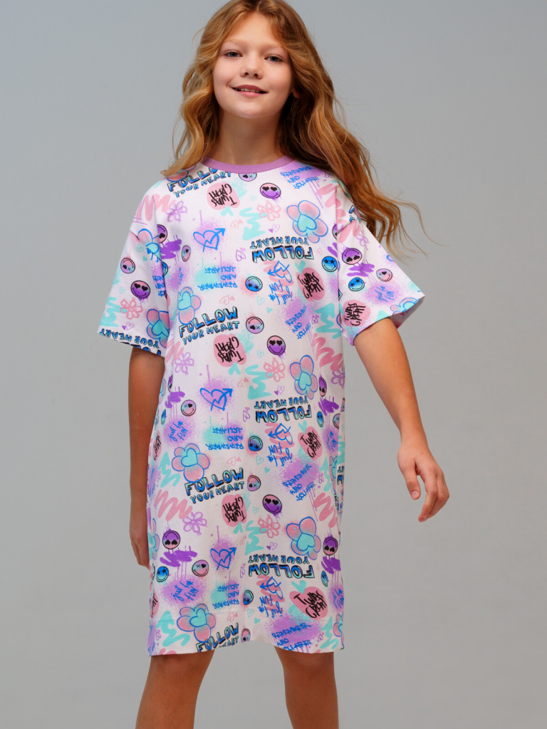 Ночная сорочка для девочки подростка. Ночнушка из эластичного и приятного на ощупь трикотажа. Высокое содержание хлопка 95%. Благодаря наличию эластана в составе ткани изделие держит форму и меньше мнется.