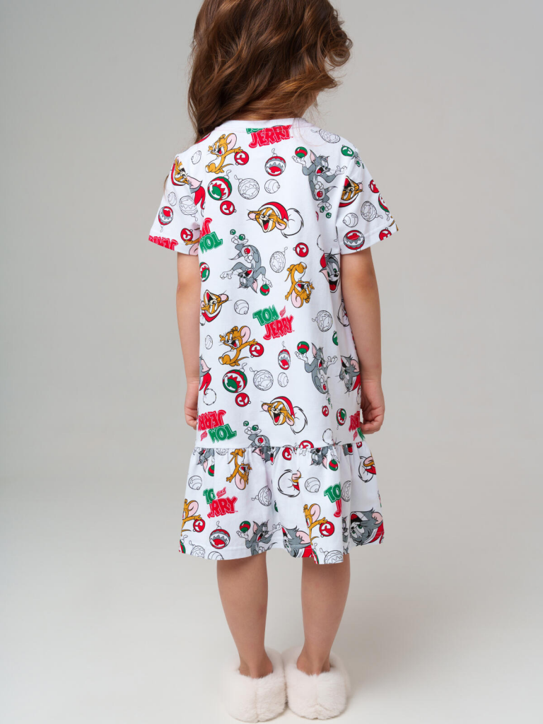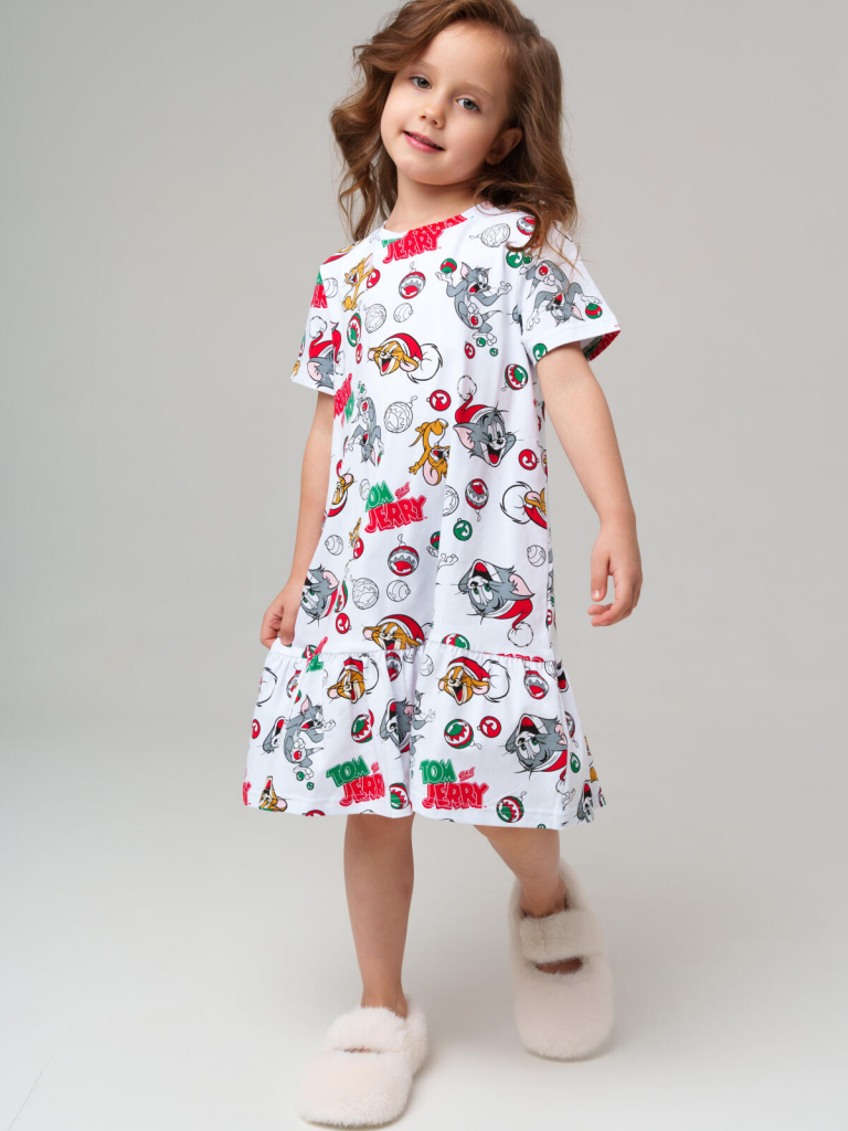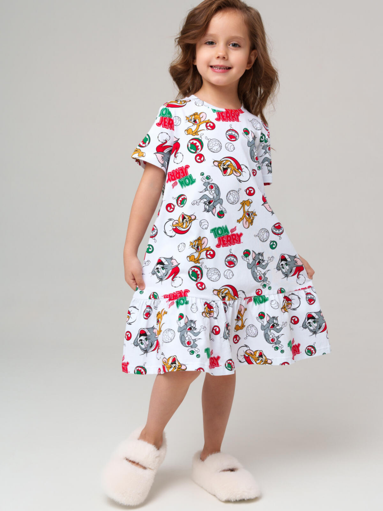 Детская трикотажная ночная сорочка для девочки с героями Том и Джерри от PlayToday — мягкий и яркий вариант для спокойного сна и уютного отдыха дома. Свободный крой и короткие рукава обеспечивают комфорт в течение всей ночи, а любимые персонажи на ткани делают сорочку особенно привлекательной для ребёнка.Преимущества модели:+ мягкий хлопковый трикотаж — приятен к телу и не раздражает кожу+ свободный крой — не стесняет движений во сне+ короткие рукава — комфорт в тёплое время года+ яркий принт Том и Джерри — любимые герои всегда рядом+ универсальность — подойдёт и для сна, и как лёгкий домашний нарядСорочка PlayToday помогает девочке чувствовать себя свободно и уютно. Яркий лицензионный принт с Томом и Джерри превращает обычный вечерний ритуал в праздник и делает сорочку любимой частью гардероба.Совет по стилю:Сорочка отлично сочетается с домашними тапочками и лёгким халатиком PlayToday — это готовый комплект для сна и утренних сборов.Размеры: 98, 104, 110, 116 и 122 см — подходят для девочек от 3 до 7 лет.Мягкая и яркая ночная сорочка для девочки с Том и Джерри от PlayToday — лучшее решение для комфортного сна и домашнего уюта.