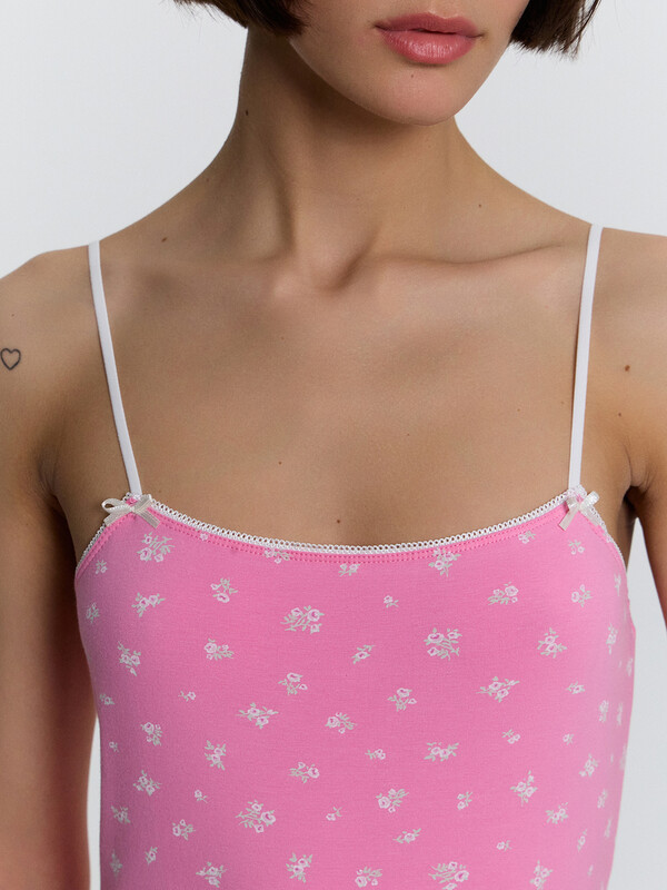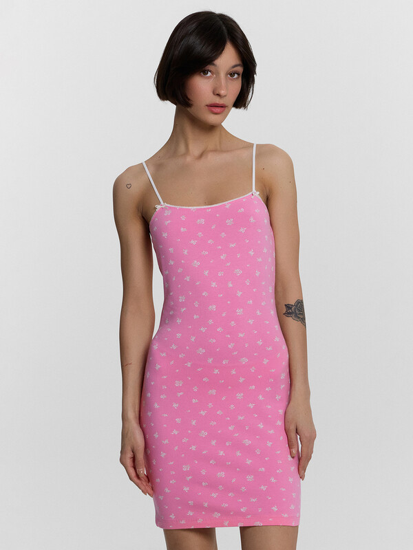 Эта женская ночная сорочка — элегантное и комфортное решение для сна. Прилегающий силуэт мягко подчеркивает фигуру, создавая женственный и изящный образ. Мини-длина придает изделию легкость, а верхний край обработан мягкой тесьмой, обеспечивающей комфортное прилегание. Тонкие бретели-спагетти создают утонченный и легкий акцент, добавляя воздушность модели. Низ изделия аккуратно обработан швом в подгибку, что делает сорочку не только красивой, но и долговечной. Изготовленная из хлопковой кулирки, она дарит ощущение мягкости и естественной воздухопроницаемости, позволяя коже дышать и обеспечивая комфортный отдых. Прекрасный выбор для тех, кто ценит сочетание простоты, удобства и элегантности в домашнем гардеробе. Отлично подходит для уютных вечеров и спокойного сна!
