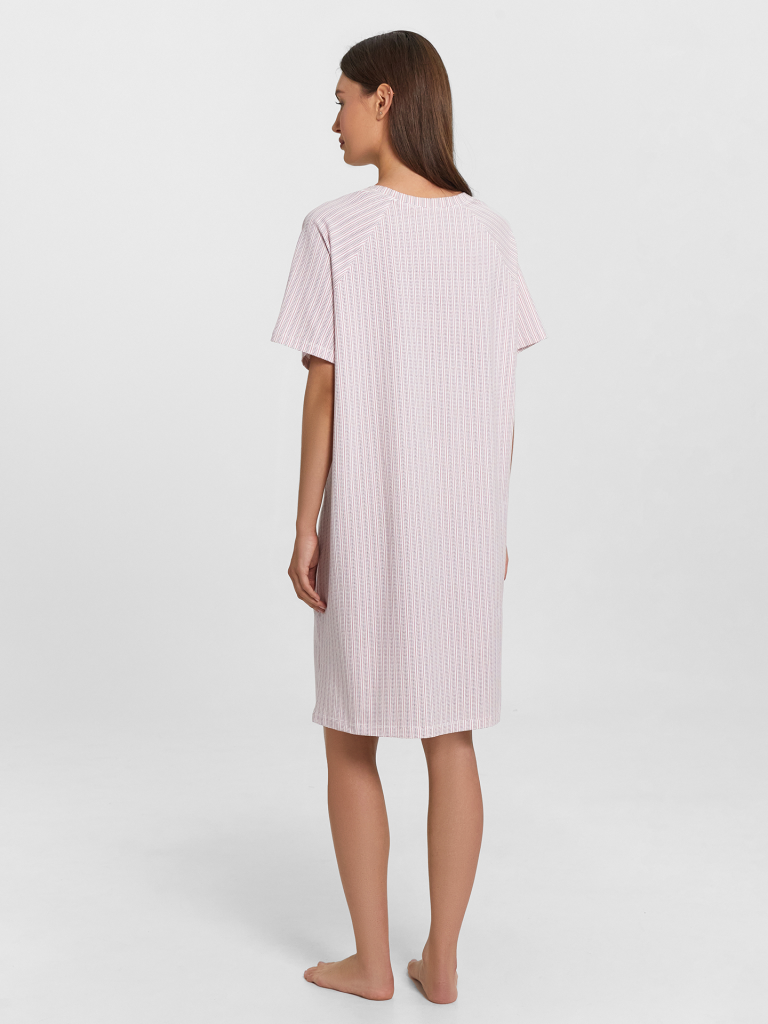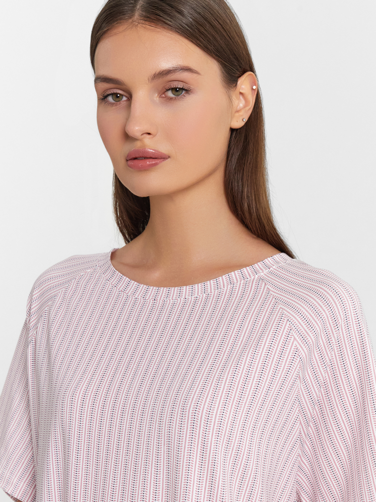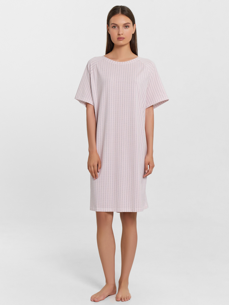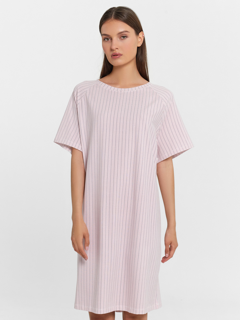 Женская сорочка — комфортный и универсальный вариант для повседневного гардероба. Прямой силуэт обеспечивает свободную посадку, позволяя чувствовать себя уверенно и удобно в течение дня. Круглая горловина добавляет классический акцент, а короткие рукава реглан делают модель еще более комфортной, обеспечивая свободу движений. Нижний срез сорочки и рукавов обработан швом вподгибку, что придает аккуратность и увеличивает долговечность изделия. Материал — хлопковая кулирка — мягкий, приятный на ощупь и отлично пропускает воздух, создавая ощущение легкости и комфорта при носке. Простая, стильная и удобная — прекрасный выбор для тех, кто ценит качество и комфорт в одежде!