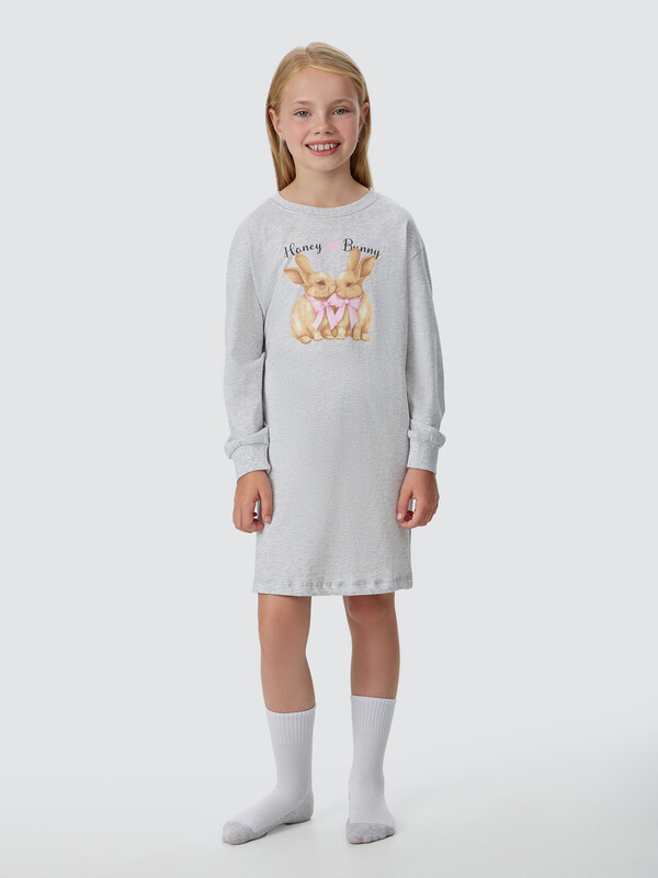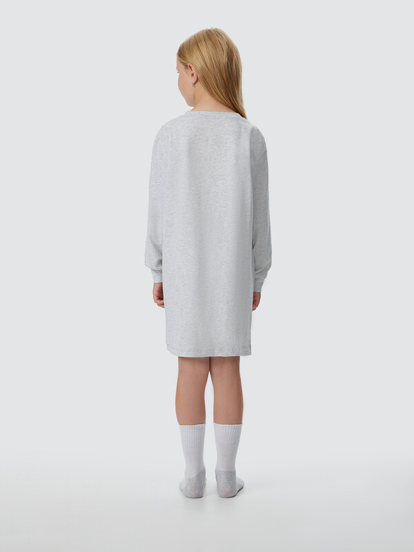 Модель длиной выше колена с прямым свободным силуэтом и спущенной линией плеча гарантирует полную свободу движений. Классическая круглая горловина и длинные рукава с аккуратными манжетами делают эту ночную сорочку для девочки особенно удобной для ночного отдыха.