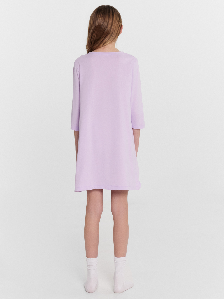 Ночная сорочка для девочек, созданная для максимально комфортного сна. Она имеет круглый вырез горловины и рукава 3/4, что обеспечивает свободу движений и комфорт в любую погоду. Изделие выполнено из нежной кулирки - натурального хлопкового материала, который отличается своей мягкостью и дышащими свойствами. Кулирка отлично пропускает воздух, предотвращая перегрев и обеспечивая уютный и спокойный сон. Кроме того, этот материал гипоаллергенен и подходит для чувствительной кожи, делая сорочку идеальным выбором для детей.
