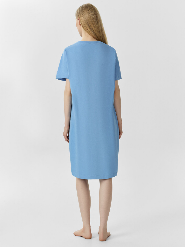 Ночная сорочка из натурального хлопкового материала — это идеальное сочетание комфорта, практичности и привлекательного дизайна. Хлопок обладает отличной воздухопроницаемостью, мягкостью и гипоаллергенными свойствами, благодаря чему сорочка подходит даже для самой чувствительной кожи. Свободный силуэт не ограничивает движения, обеспечивая максимальное удобство во время сна и отдыха. Длина до колена делает модель универсальной — она одинаково хорошо подходит как для ночного гардероба, так и для домашнего использования. Короткие рукава и круглый вырез горловины придают образу лаконичность и нежность, а боковые разрезы добавляют легкости и визуальной динамики. Сорочка выглядит аккуратно и женственно, создавая ощущение уюта и расслабленности. Это отличный выбор для тех, кто ценит натуральные материалы, комфорт и стиль в домашней одежде.
