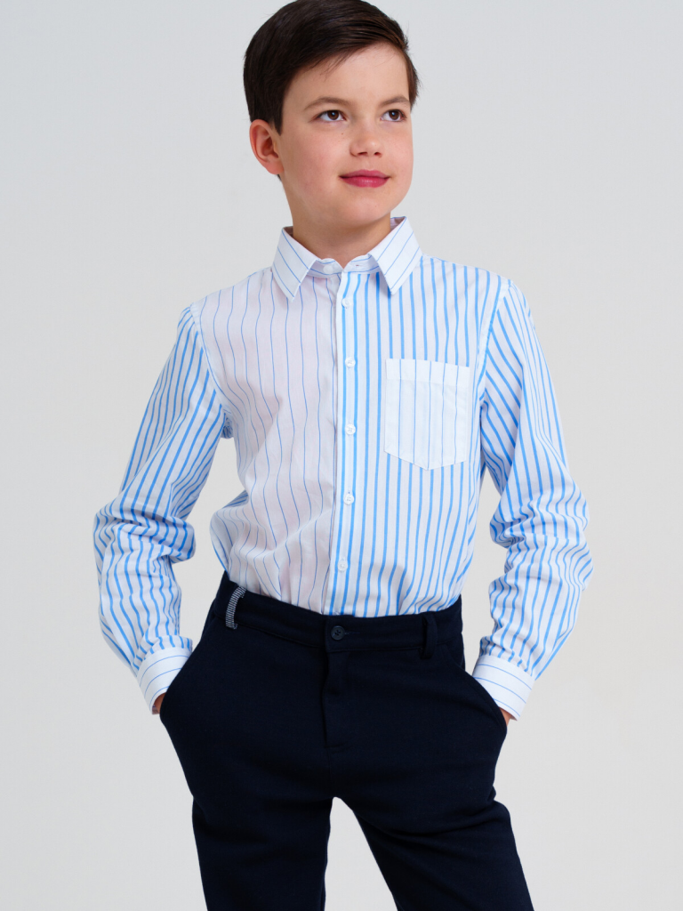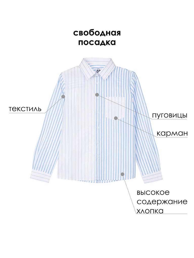 Школьная рубашка с длинным рукавом - настоящая база гардероба для школьника! Классическая рубашка выполнена из ткани с высоким содержанием хлопка, что обеспечивает максимальный комфорт для мальчика подростка во время занятий. Рубашка свободного силуэта на пуговицах станет отличным решением для школы, как на каждый день, так и для торжественных случаев. Нагрудный карман. Сорочка может быть дополнена стильным галстуком или бабочкой для создания завершенного образа в школу. Строгая, лаконичная, элегантная рубашка создаст ребенку учебный настрой.
