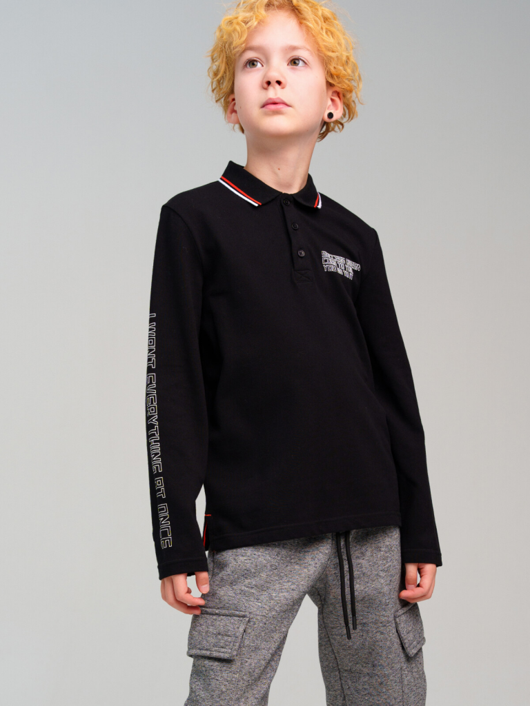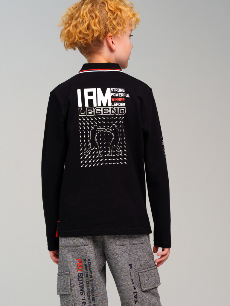 Футболка-поло для мальчика подростка. Поло с длинным рукавом из трикотажа пике. Высокое содержание хлопка 95%. Модель из капсульной коллекции PRO BOXING (ПРО БОКСИНГ). Соберите полный образ в едином стиле!