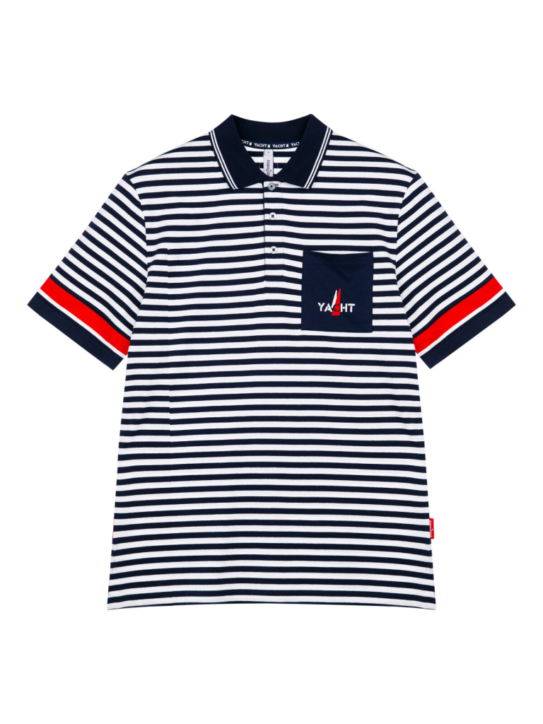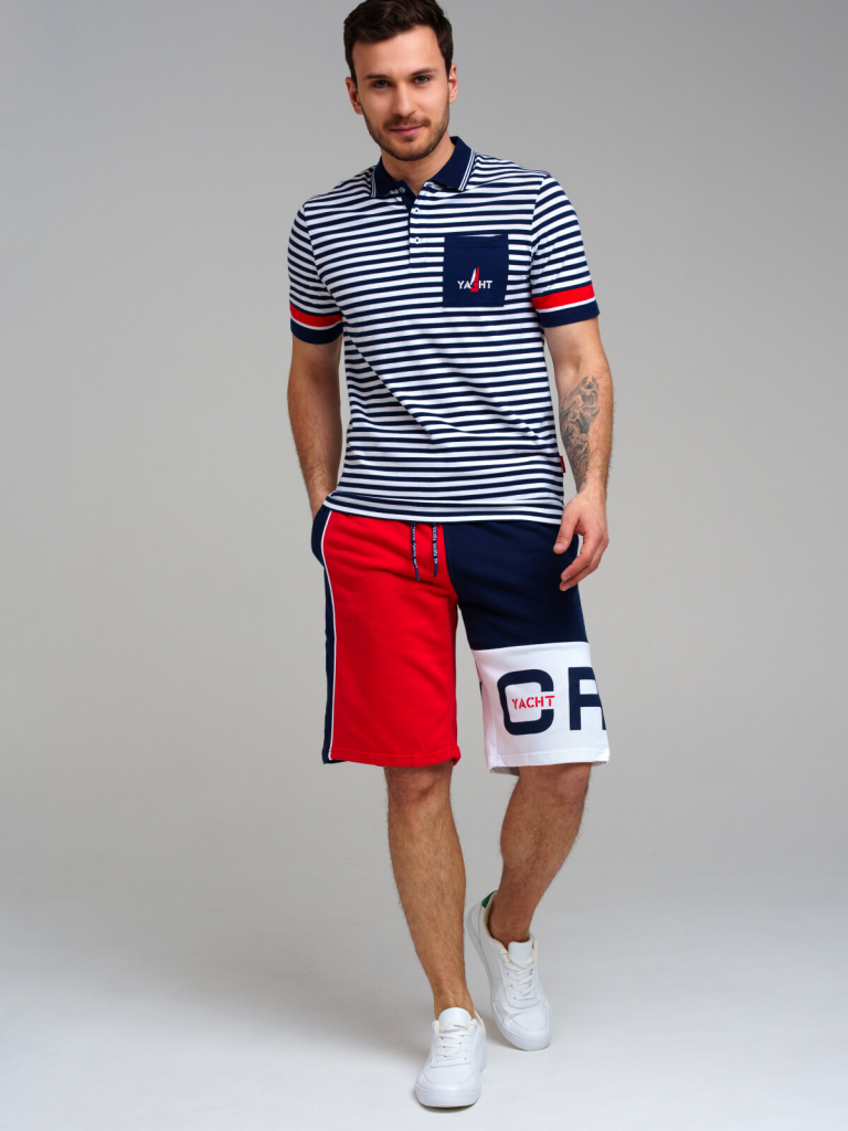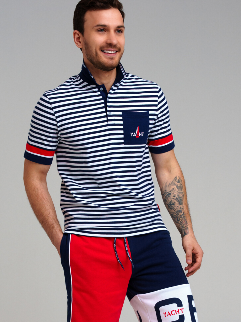 Сорочка трикотажная с воротником поло для мужчин тёмно-синий,белый,красный