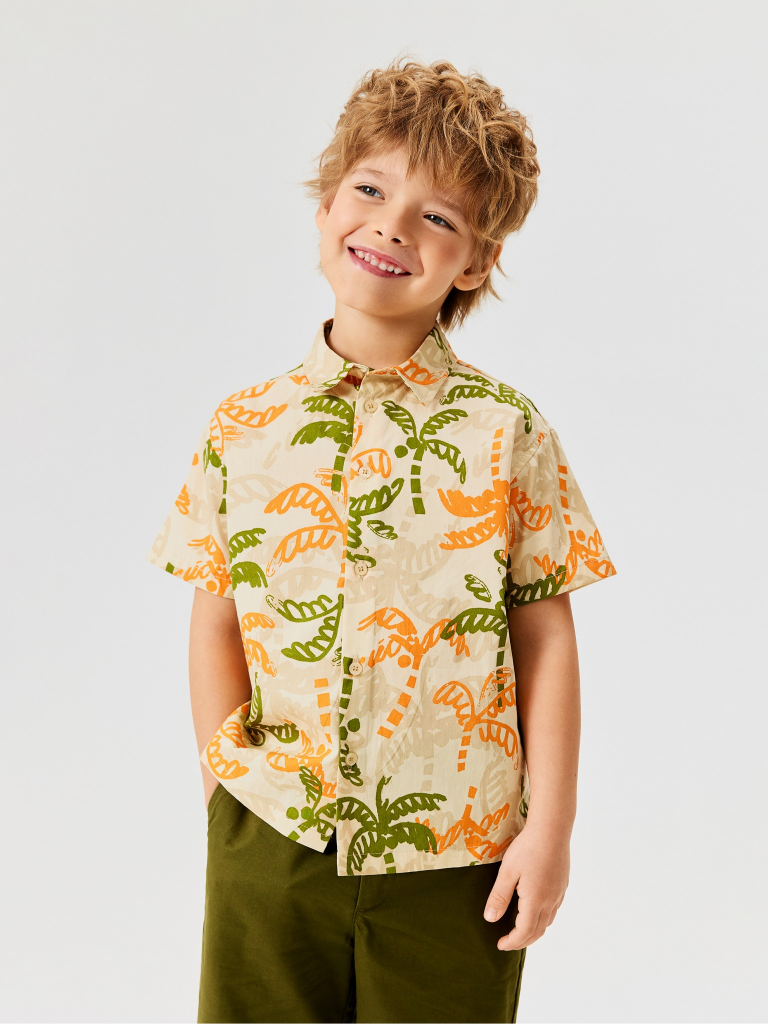 Сорочка верхняя детская для мальчиков Bario бежевый принт