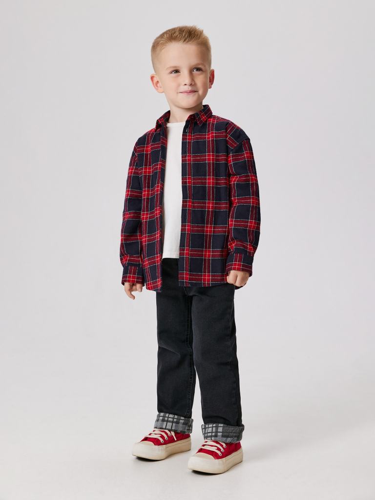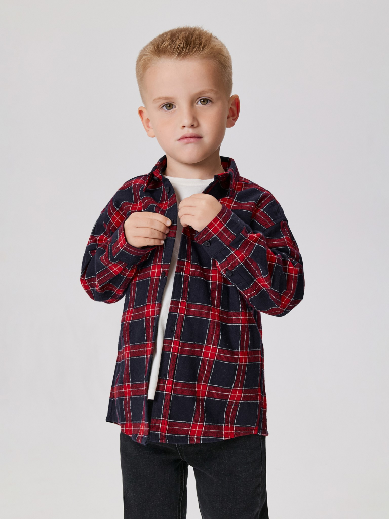 Сорочка верхняя детская для мальчиков Bento красная клетка