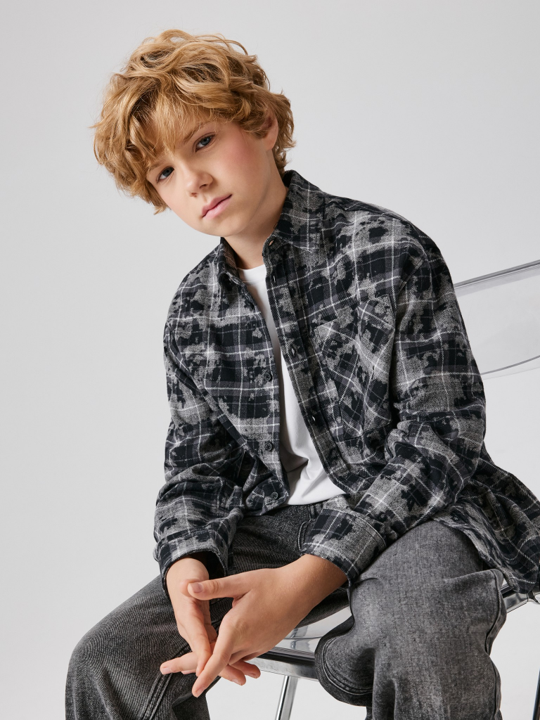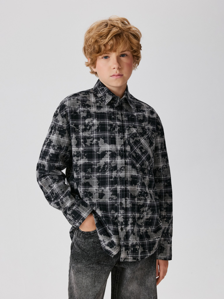 Сорочка верхняя детская для мальчиков Griz серая клетка