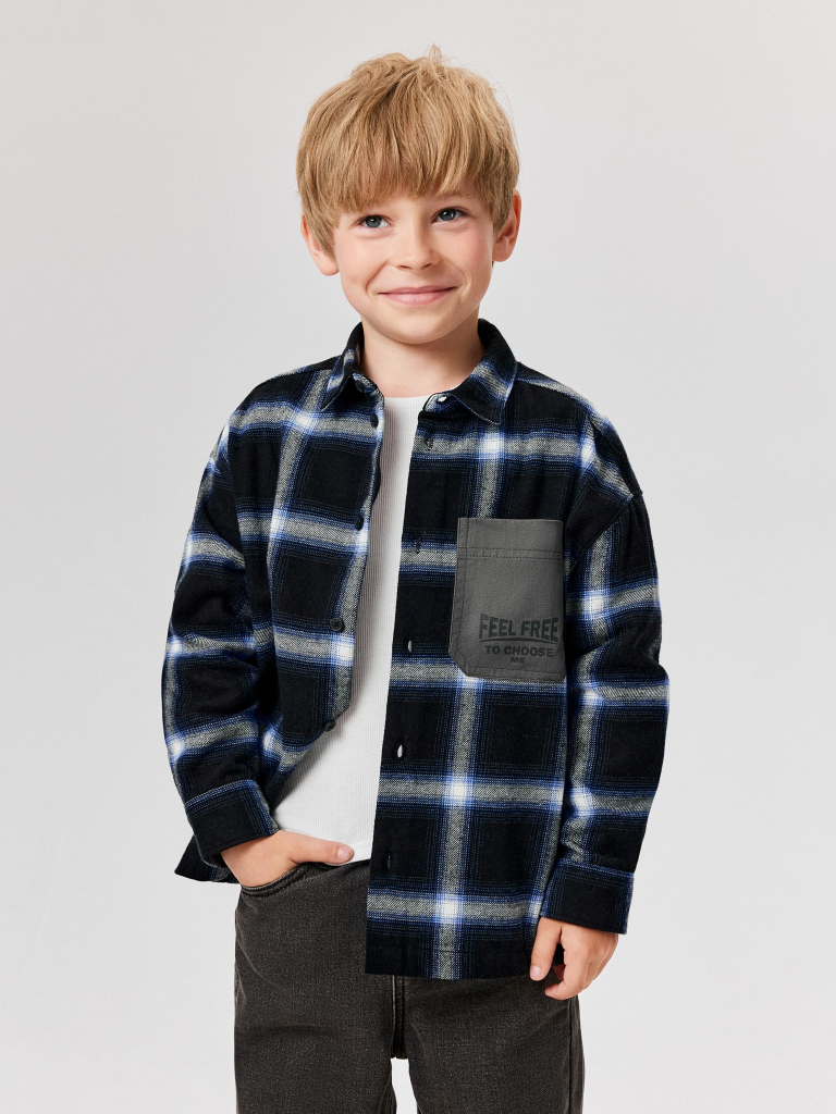 Сорочка верхняя детская для мальчиков Lateki синяя клетка