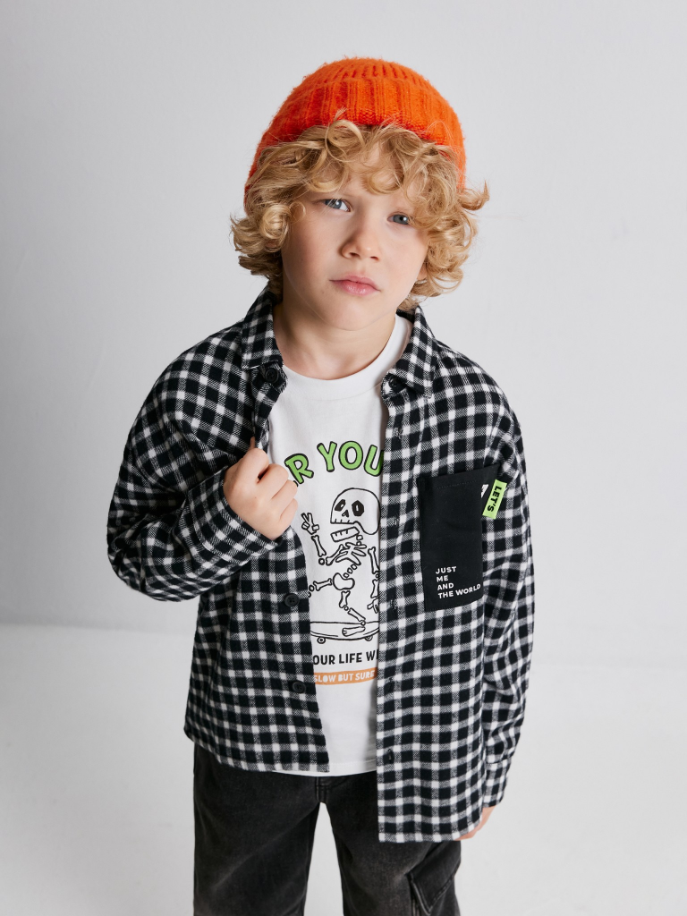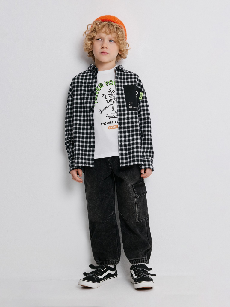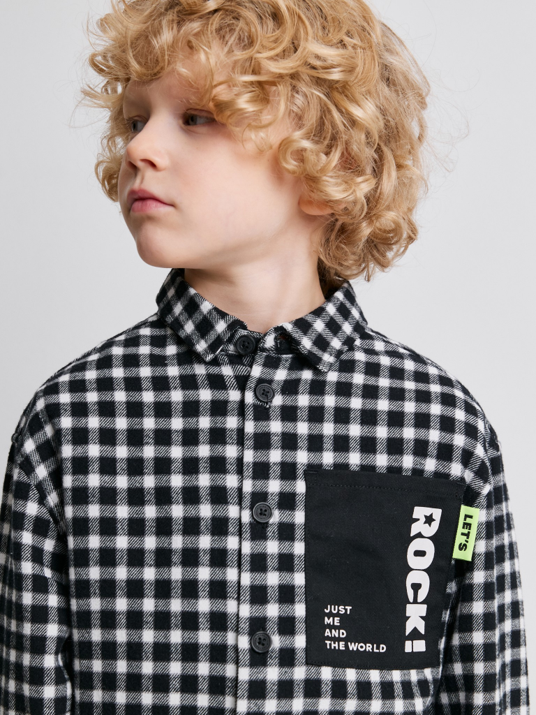 Сорочка верхняя детская для мальчиков Pablu черно-белая клетка
