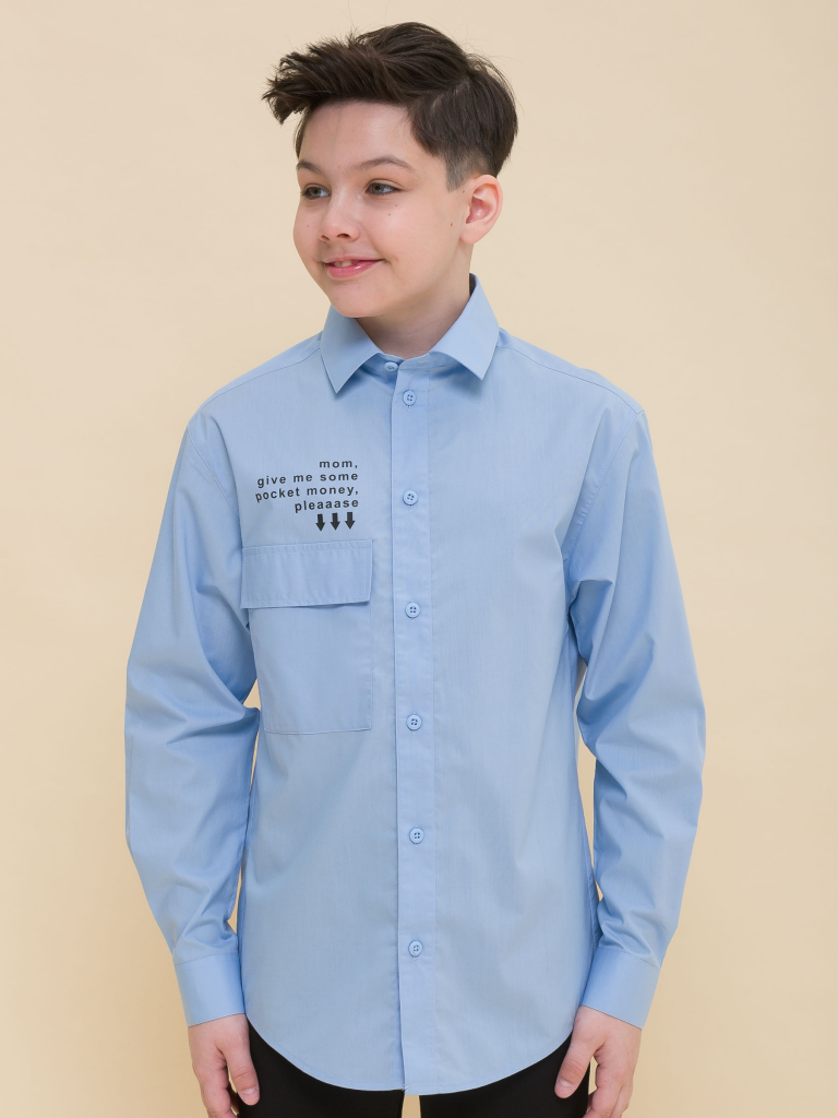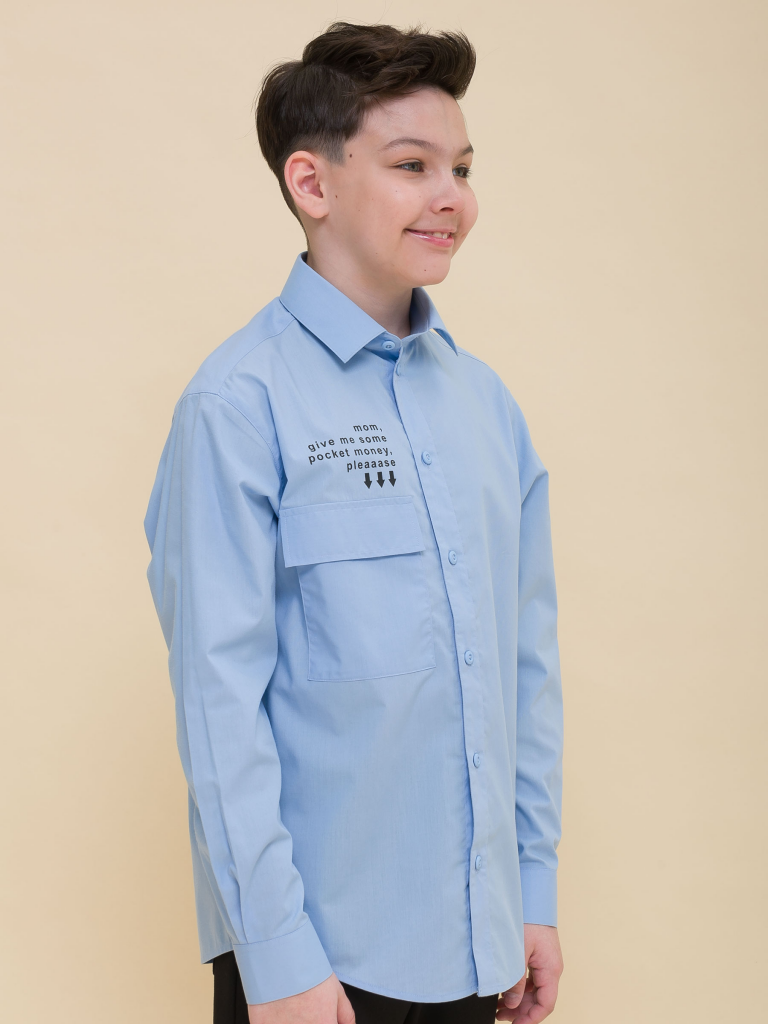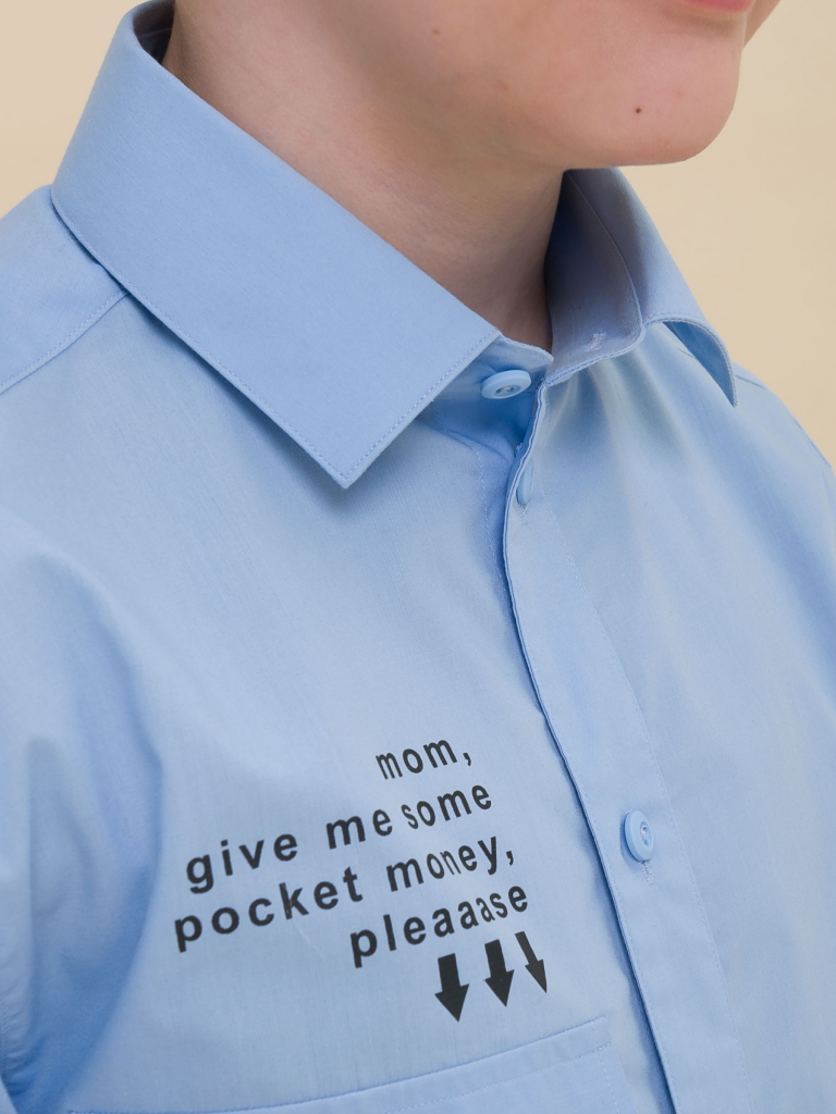Рубашка для мальчика школьная — выражение его индивидуального стиля и уверенности. Сорочка детская свободного силуэта. По спинке расположена кокетка с двумя защипами, что обеспечивает полную свободу движения во время активных игр и занятий. Накладной карман с клапаном — это не только удобство, но и модный акцент, который добавляет шарма этой рубашке. А над карманом забавный принт, который придает рубашке индивидуальность и юмор. Ведь какой мальчик не захочет носить рубашку, которая говорит за него: "Мама, положи в мой карман деньги, пожа-а-алуйста"! В составе ткани преобладает высококачественный хлопок, делая эту рубашку мягкой и приятной на ощупь. Благодаря полиэстеру рубашка детская не потеряет форму и превосходный внешний вид даже после многих стирок, а кожа вашего ребенка будет дышать, и ему будет комфортно в течение всего дня. Для школьных рубашек мы используем сорочечную ткань, плотностью 100 гр/м2. Эта школьная рубашка прекрасно сочетается с различными брюками, пиджаками и жилетами, что делает ее универсальной и практичной. Рубашка для мальчика не только стильная, но и функциональная, идеально дополнит образ вашего мальчика. Рекомендуемый уход за рубашкой также прост и эффективен: стирать при температуре не выше 30 °C, без предварительного замачивания, с изнанки, и аккуратно расправить перед сушкой. При правильном уходе рубашка не потеряет внешнего вида. Не забудьте выбрать нужный размер по таблице размеров на фото. Обратите внимание, что цвет товара на экране вашего устройства может немного отличаться от цвета реального изделия.