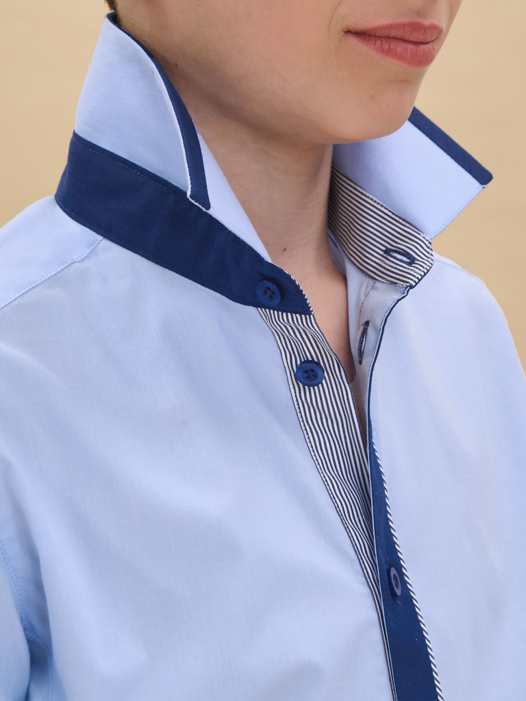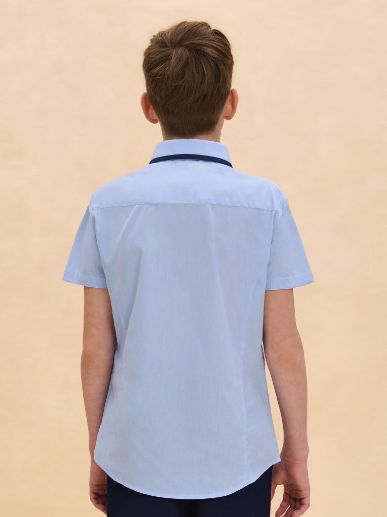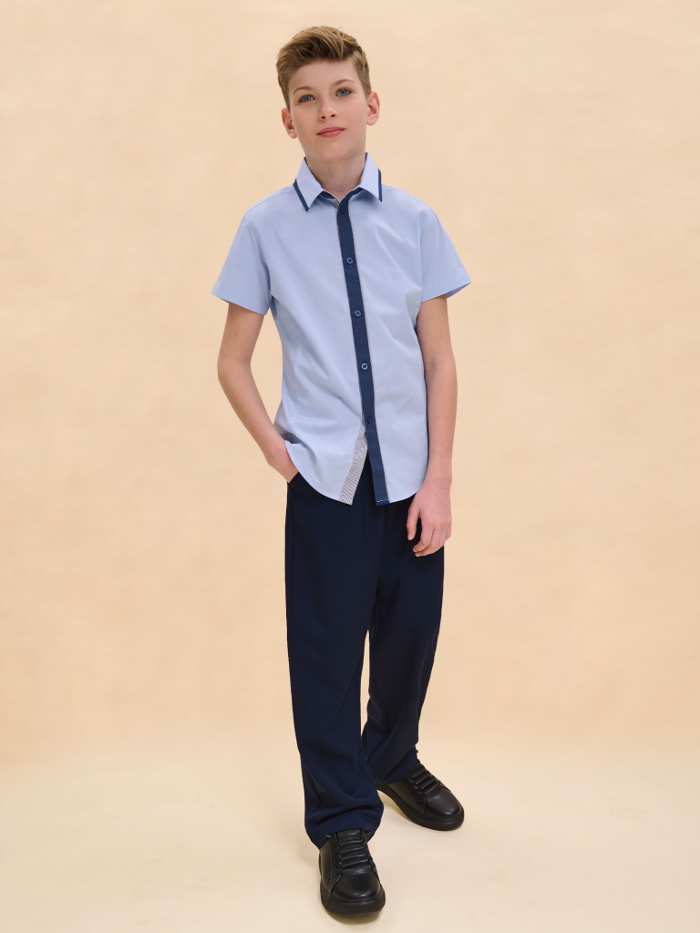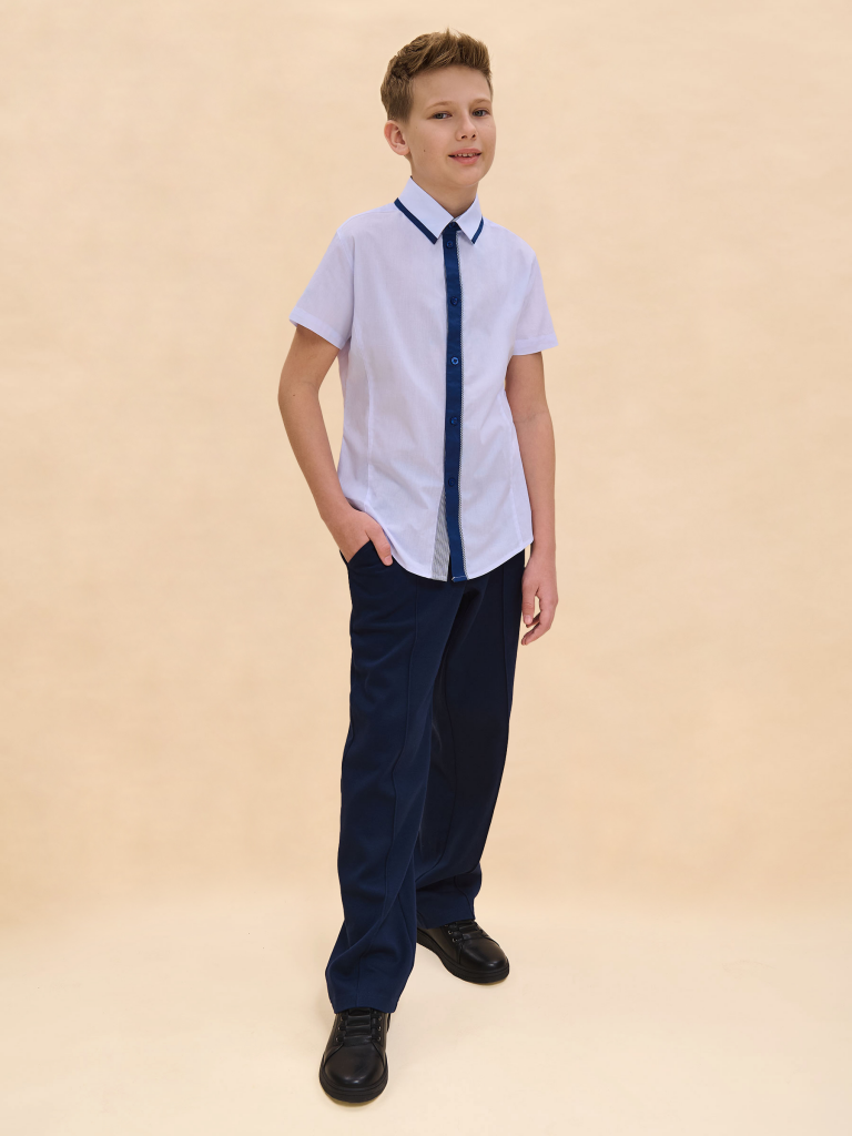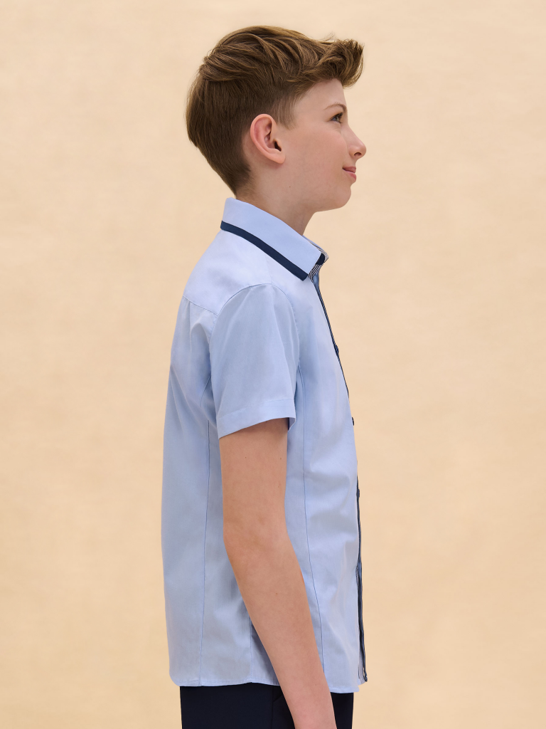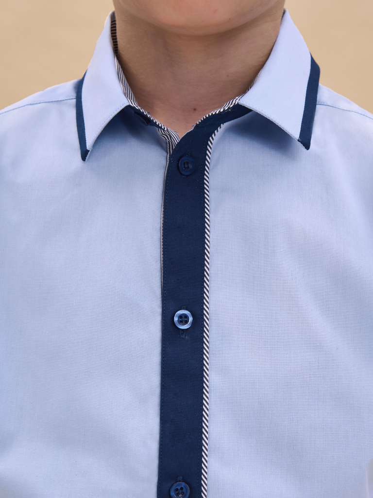 Рубашка для мальчика школьная - остается незаменимой частью гардероба. Детская рубашка представляет собой полуприлегающий силуэт с рельефами от проймы по переду и спинке. Сорочка для мальчика дополнена воротником типа «Виндзор», который позволяет носить её как с классическим галстуком или галстуком-бабочкой, так и без них. Декорирована контрастной отделкой по стойке и внешнему краю воротника, внешней планке. Нижняя планка и декоративный кант вдоль планки выполнены из ткани в полоску, что придает рубашке стильный вид и выгодно отличает её от банальных однотонных моделей. Рубашка для мальчика имеет темный цвет отделки, что позволяет реже стирать изделие. В составе ткани преобладает высококачественный хлопок, который отлично пропускает воздух, давая коже дышать и не перегревая ребёнка. Полиэстер же обеспечивает сохранность формы изделия. Для школьных рубашек мы используем сорочечную ткань, плотностью 100 гр/м2. В ассортименте представлена рубашка на мальчика в синем, белом и голубом цвете, которые легко сочетаются с любыми брюками, пиджаками и жилетами. Стильная рубашка школьная - прекрасный выбор для повседневной носки в школу и более торжественных случаев. Рекомендуемые инструкции по уходу: стирать при температуре не выше 30 °С, без предварительного замачивания, с изнанки, расправить перед сушкой. Это поможет сохранить качество и цвет на длительное время. Выберите нужный размер, ориентируясь на таблицу размеров на фото. Помните, что цвет товара на экране вашего устройства может отличаться от реального цвета изделия.