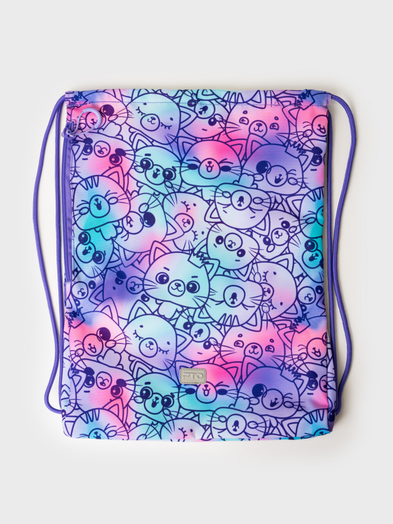 Сумка-мешок для сменной обуви из прочной водонепроницаемой ткани для девочки. Мешок для сменки для школьницы с вместительным отделением, затягивающимся двумя шнурками. Дополнительный боковой карман застегивается на молнию. Размер мешка 34*44*2 см. Это отличный вариант для школы и детского садика. В него можно складывать не только сменную обувь, но и спортивную одежду для физкультуры и секций, брать в путешествия. Он легкий и компактный. К мешку для сменки можно подобрать рюкзак и пенал в едином дизайне.
