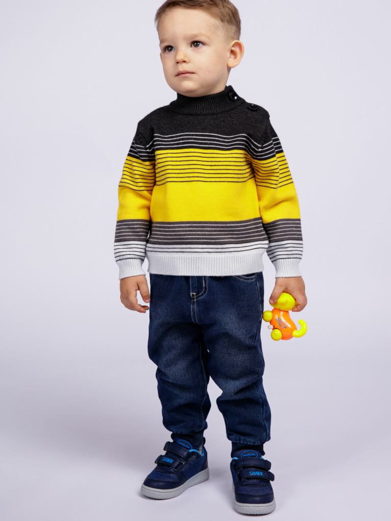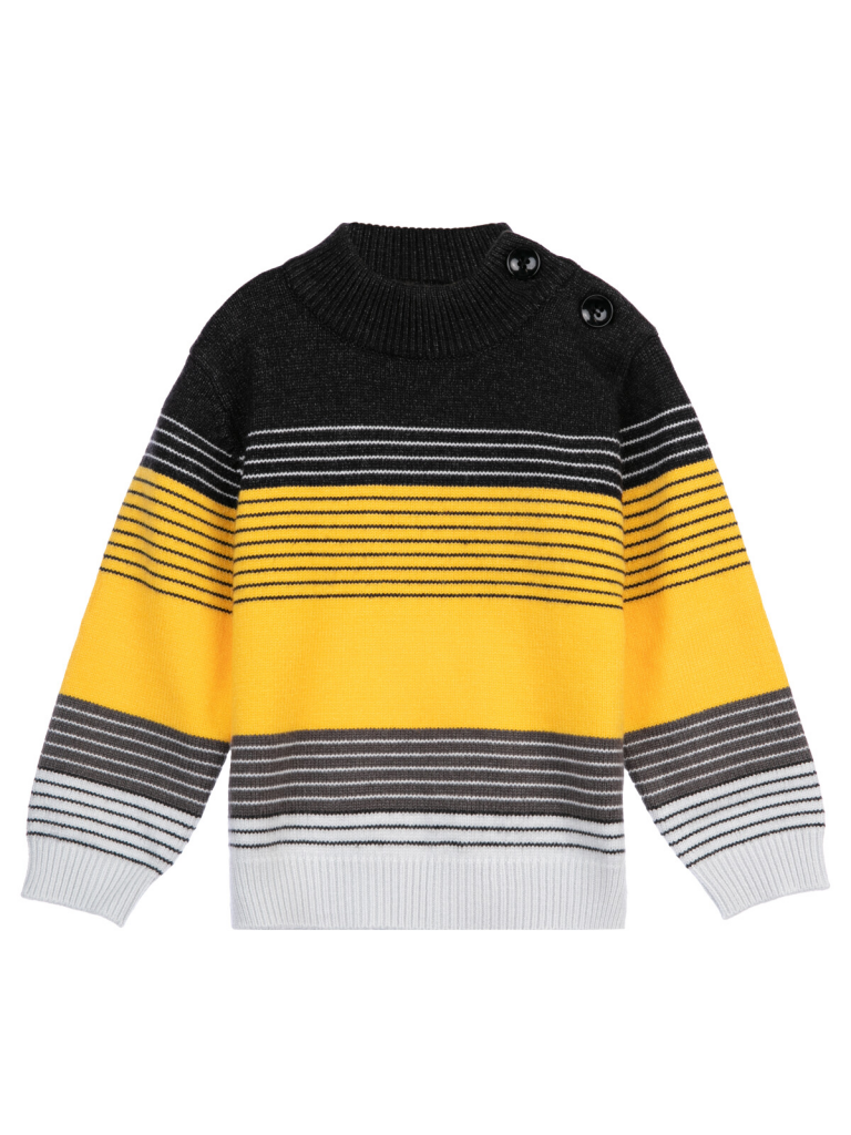 Свитер из вязаного трикотажа. 50% вискоза. Вискоза отличается высокой гигроскопичностью - она впитывает влагу и отлично сохраняет тепло. Воротник, манжеты и низ изделия в рубчик. На плече застежка на пуговицы.