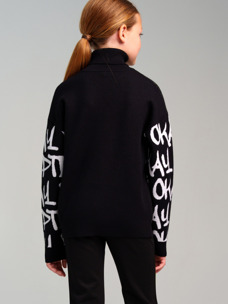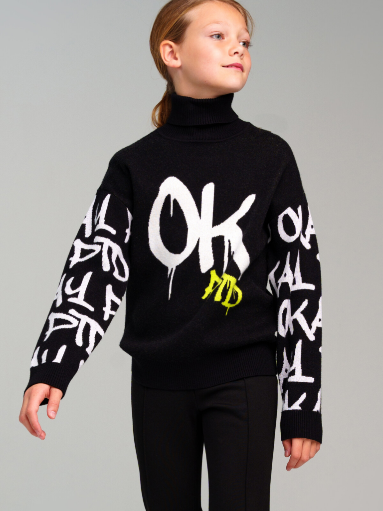 Свитер для девочки подростка. Модный свитер жаккардовой вязки с высоким содержанием вискозы. Вискоза хорошо поглощает влагу, отлично пропускают воздух. Изделия приятны к телу, и не вызывают раздражения. Модель из капсульной коллекции OK.PTD. Соберите полный образ в едином стиле!