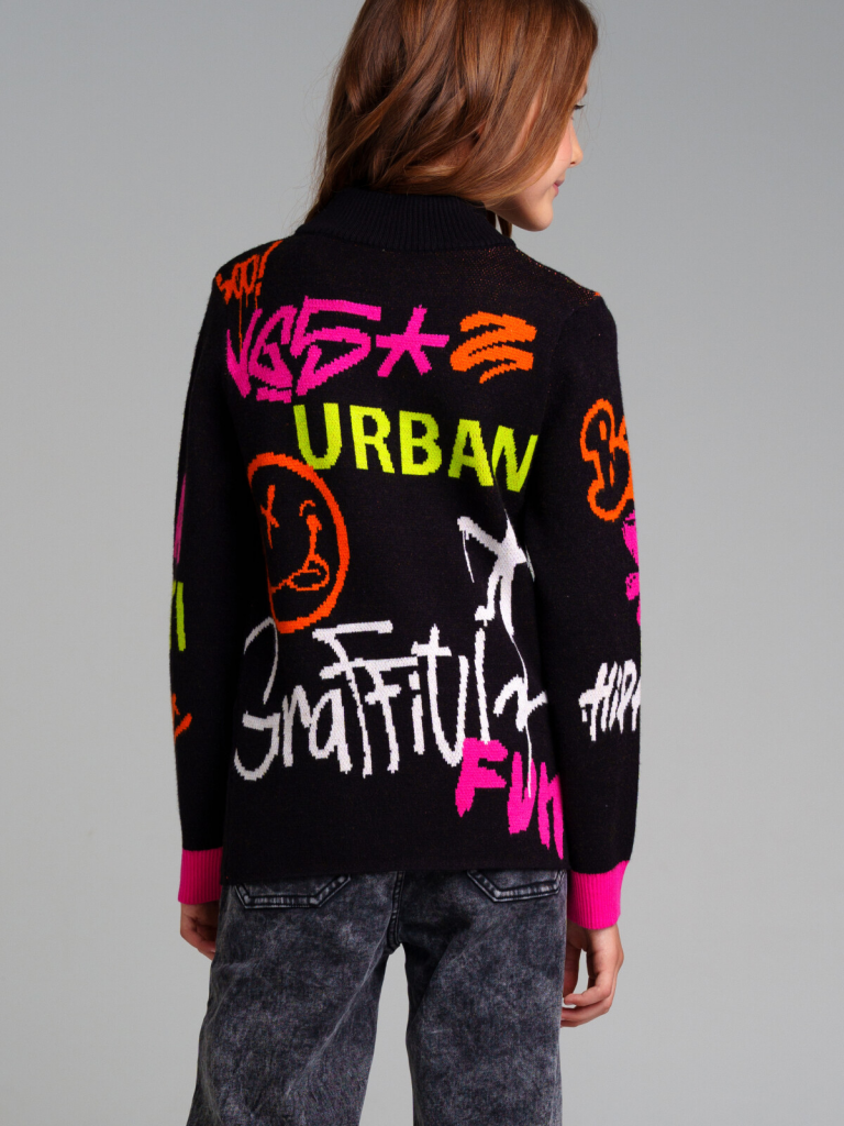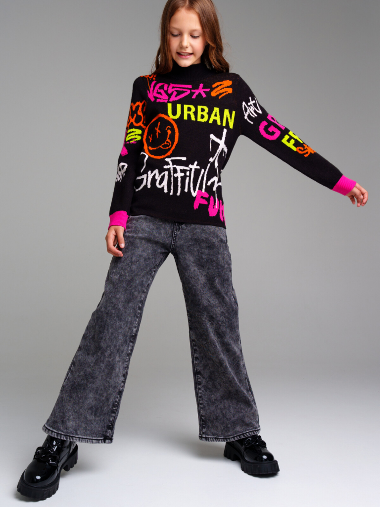 Джемпер из вязаного трикотажа. 50% вискоза. Вискоза отличается высокой гигроскопичностью - она впитывает влагу и отлично сохраняет тепло. Горловина, манжеты и низ изделия в рубчик.