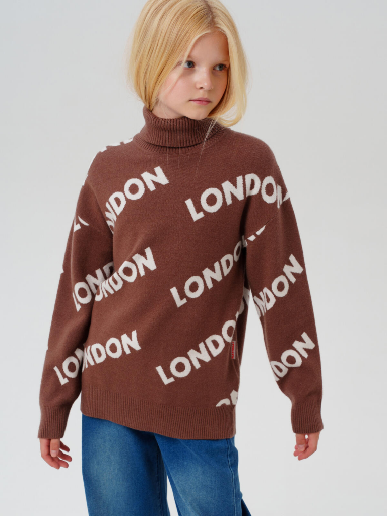 > Свитер трикотажный для девочек коричневый,белый