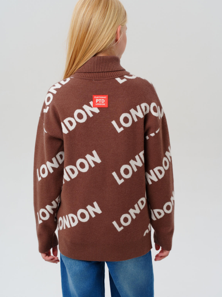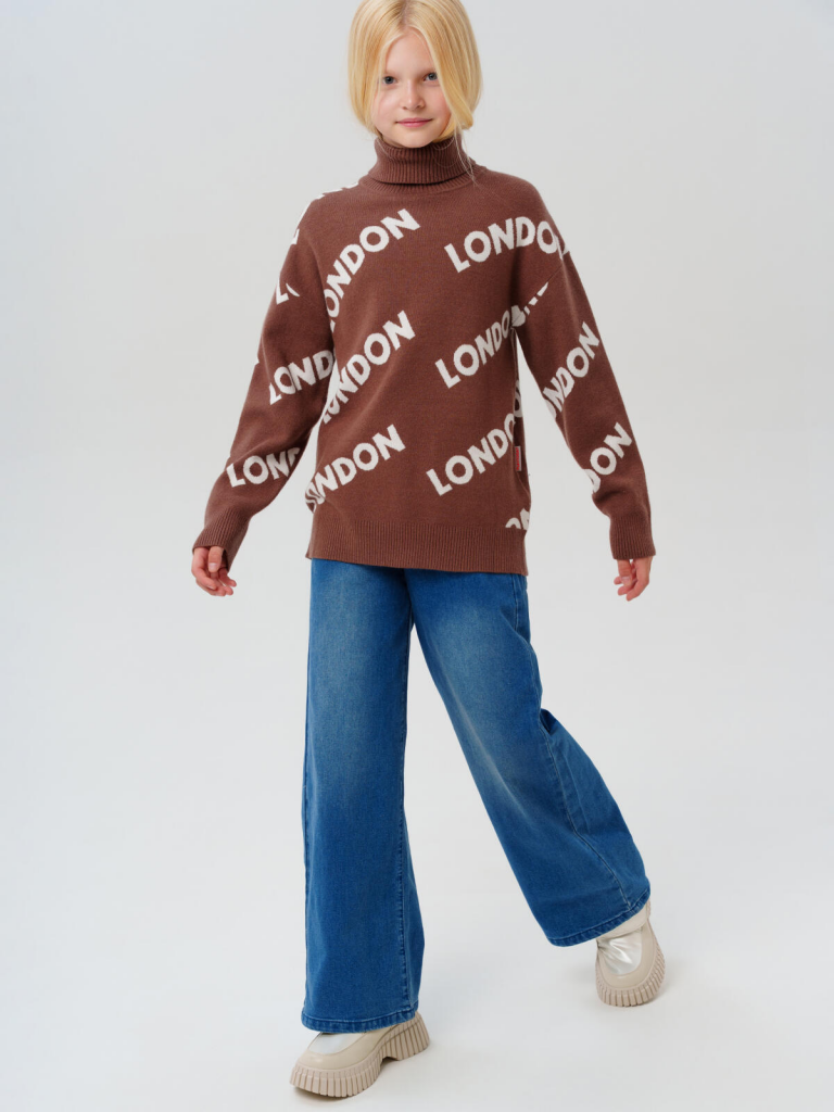 Свитер трикотажный для девочек коричневый,белый