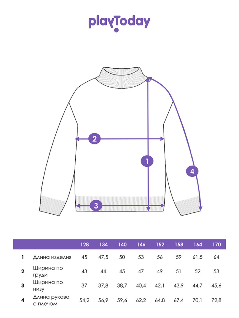 | Размер: рост, см | 74 | 80 | 86 | 92 | 98 | 104 | 110 | 116 | 122 | 128 | 134 | 140 | 146 | 152 | 158 | 164 | 170 |