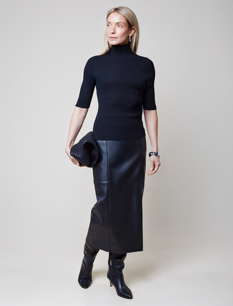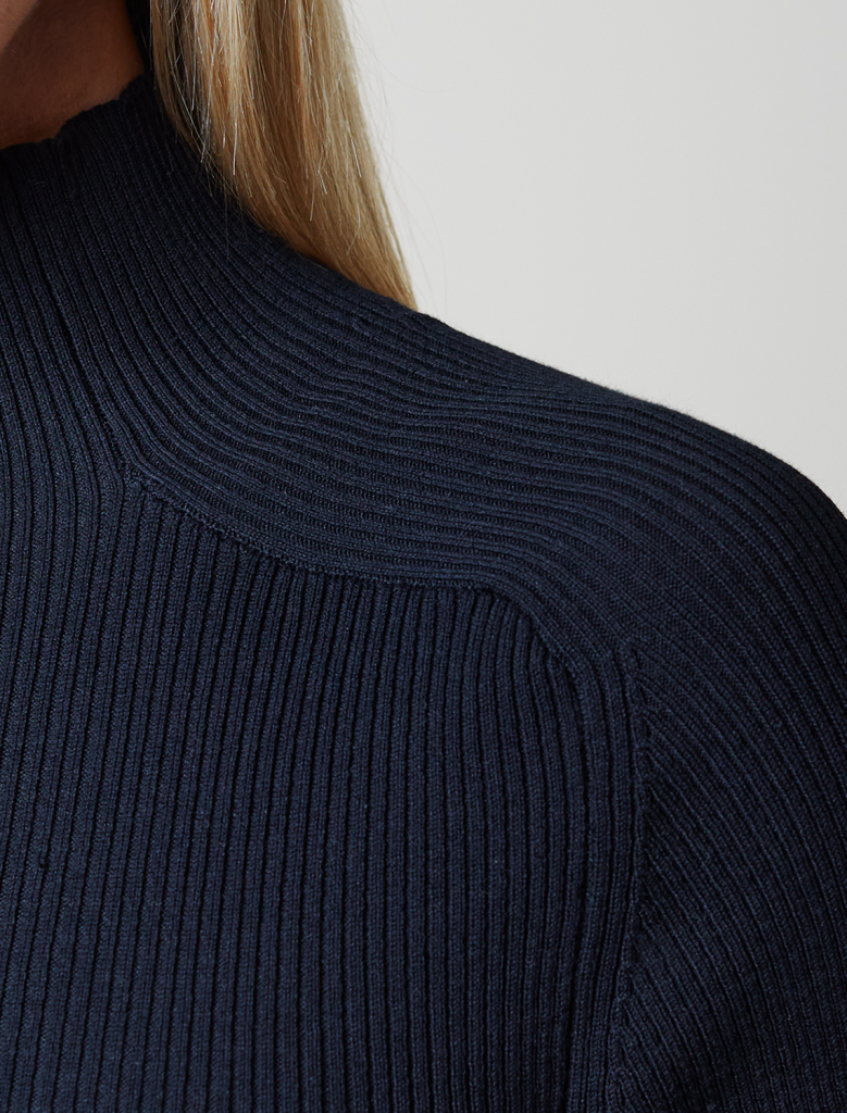 Водолазка тонкой вязки в рубчик выполнена из хлопка. Лаконичная модель с коротким рукавом дополнена металлическим логотипом бренда. Изделие идеально сидит по фигуре и не сковывает движений. Мягкая пряжа очень приятная к телу не колется и сохраняет тепло при этом не перегревая.