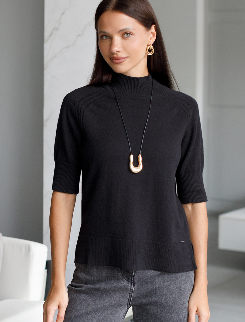 Джемпер тонкой вязки выполнен из хлопка с добавлением кашемира. Лаконичная модель дополнена декоративными швами и разрезами по бокам. Мягкая и очень приятная пряжа совершенно не колется, сохраняет тепло при этом не перегревая, гарантируя безупречный комфорт.