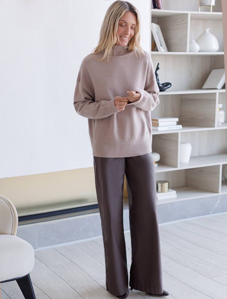 Свитер с классическим воротом выполнен из мягкой пряжи с кашемиром. Лаконичная модель свободного силуэта впишется в любой гардероб. Мягкая пряжа очень приятная к телу, поддержит комфорт на протяжении всего дня. Сочетается в костюме с брюками D38.013, D38.012 и юбкой D36.016